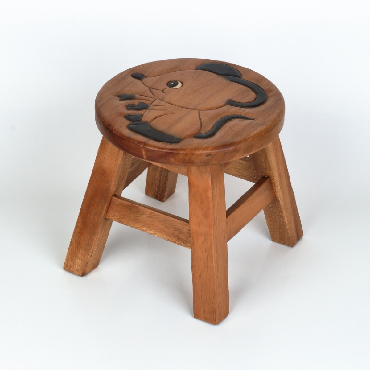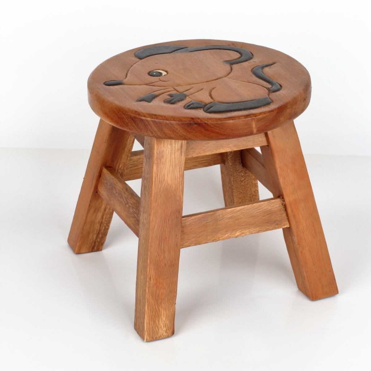 Rozměry: výška cca 26cm, podesta nožek o velikosti 25x25cm (průměr nesouměrného sedáku, který ovlivňuje tvar vyřezávaného motivu, je 26-30cm)