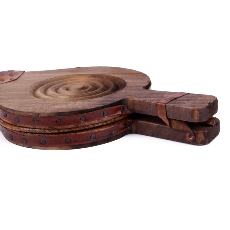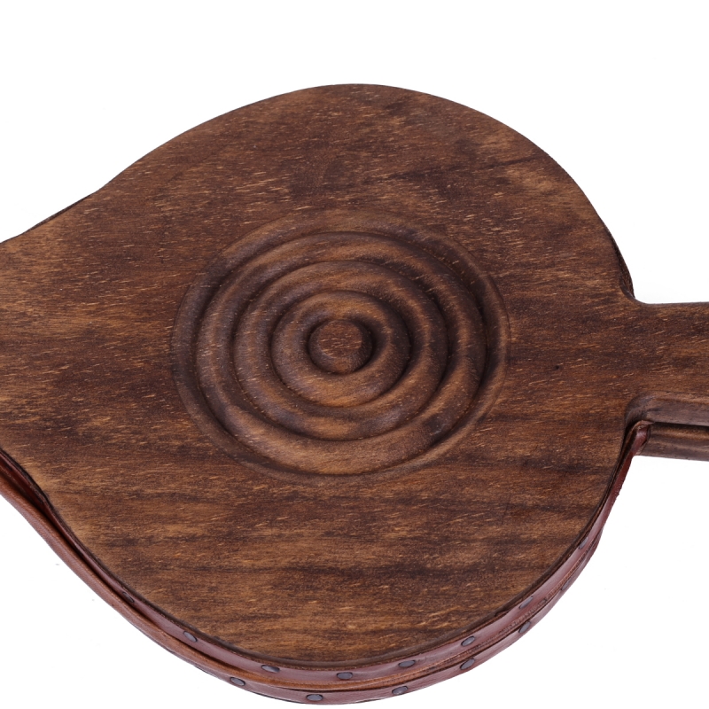 Funkční dmychadlo z pravé kůže a dřeva je určené pro rozdělávání ohně v kamnech, krbech a grilech. Bok dmychadla je zdoben spirálou metodou vypalování a kovovými cvočky.