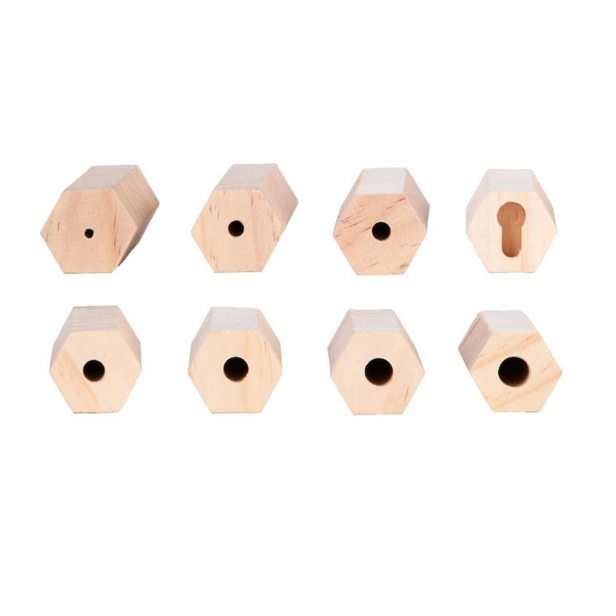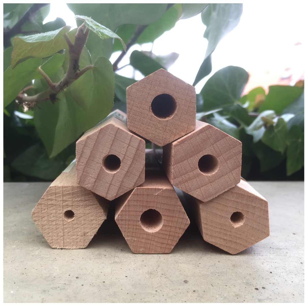 Každá z šesti komůrek působí jako samostatný drobný úkryt. Právě tato členitost dává výrobku kouzlo i funkci. Nepůsobí jako obyčejný kus dřeva, ale jako přirozené útočiště, které v zahradě vypadá jemně, čistě a přitom přináší skutečný užitek.