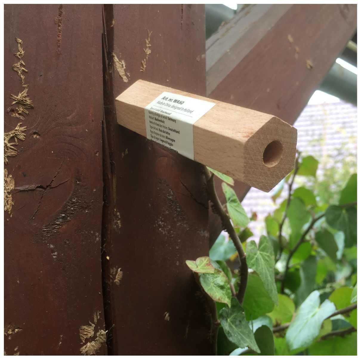 Důležité je, aby domeček pevně držel a nekýval se. Samotářské včely mají rády klid, teplo a sucho. Čím přirozenější a klidnější zákoutí vytvoříte, tím lépe se bude výrobku v zahradě dařit.
