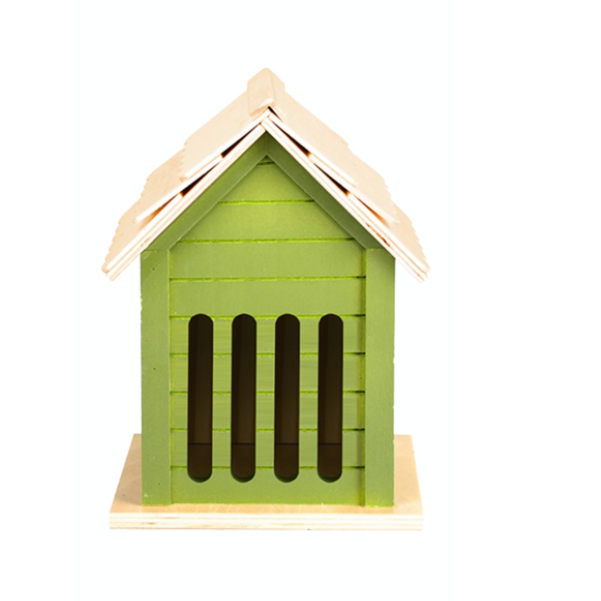 Aby byl domeček pro motýly pohodlný, přidejte dovnitř nějaké větvičky. Zadní část domečku lze snadno otevřít. Domeček můžete postavit do klidné části zahrady, nebo jej zavěsit na stěnu, plot, či strom, díky kovovému očku.