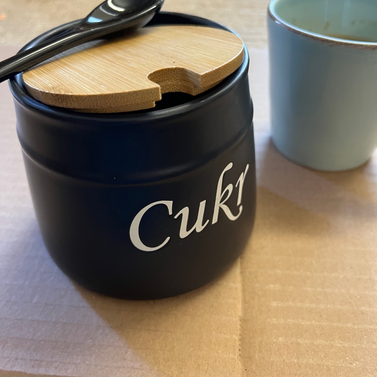 Dóza na cukr z netradiční kolekce v matné černé barvě s bílým nápisem nejlépe vynikne v kuchyni laděné do světlých barev. Společně s šálky na kávu nebo hrnky na čaj podtrhne tato cukřenka příjemný dojem ze stolování.