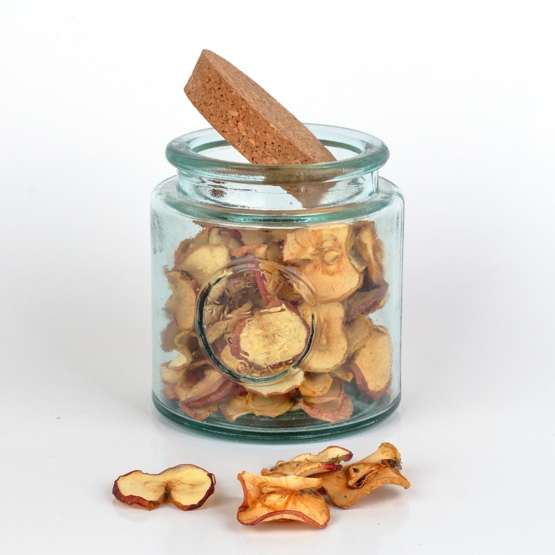 Pokud potřebujete doplňující informace pro umístění dózy na poličku s limitem prostoru, je průměr 12cm a výška včetně korkové zátky, 14cm.