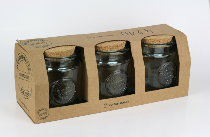 Dózy jsou vyrobeny ze 100% recyklovaného litého skla ve španělské sklárně San Miguel. Ve stejném designu naleznete v nabídce spoustu dalších doplňků do kuchyně.