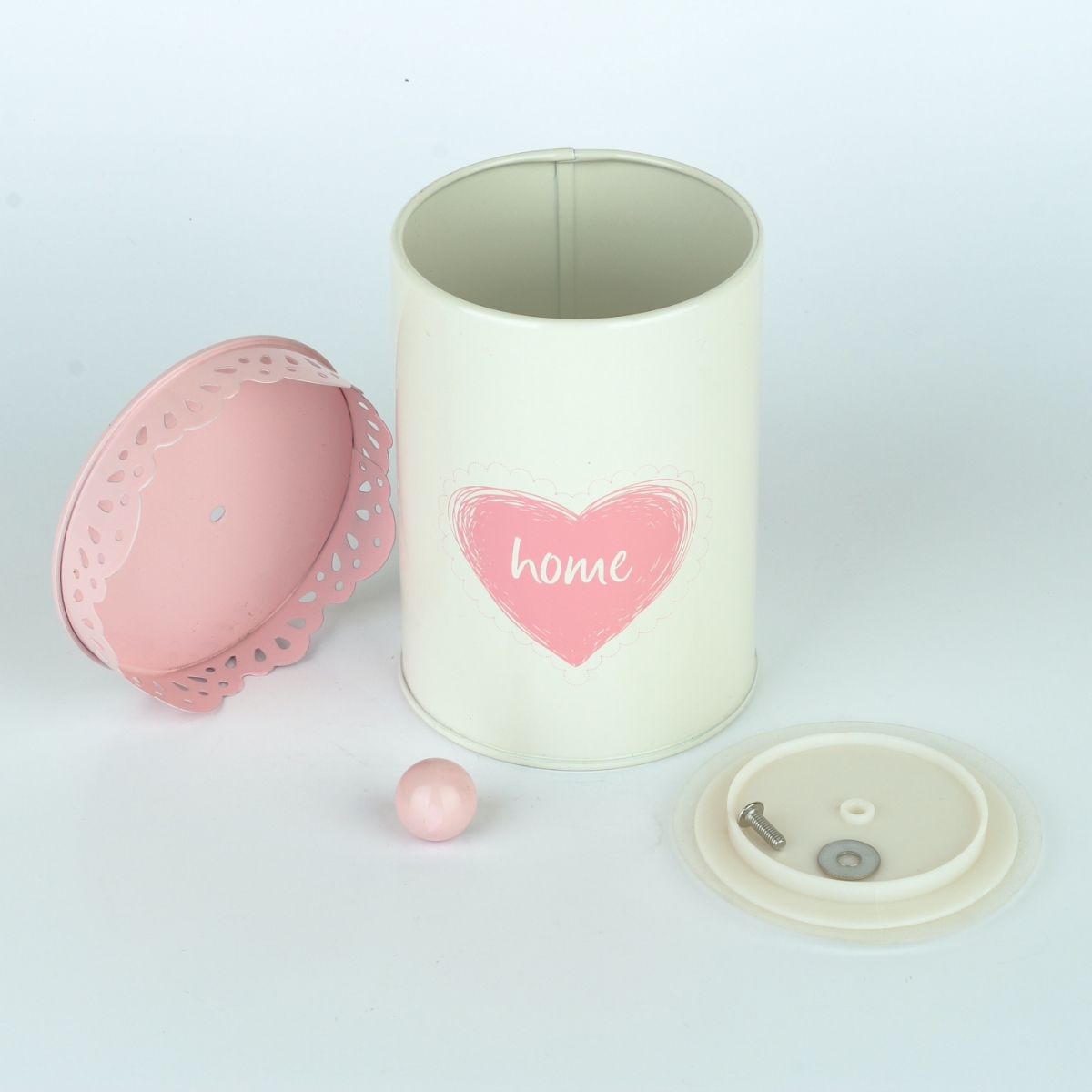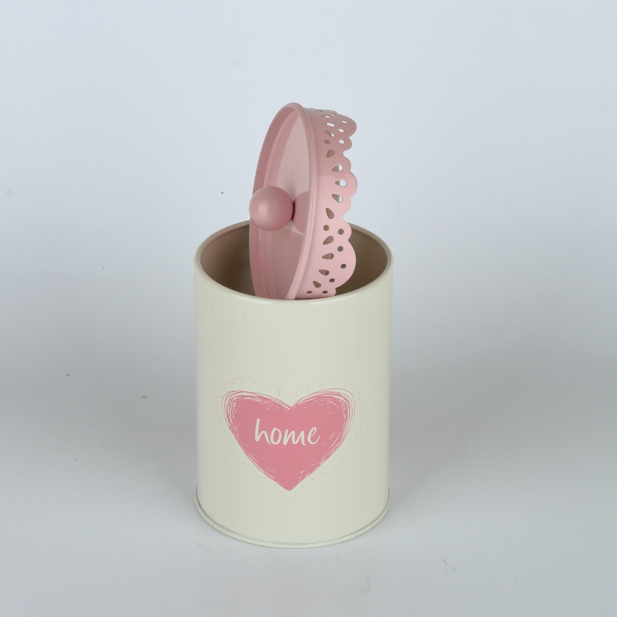 Dóza na suché potraviny s něžným dekorem vyobrazující srdce, může sloužit pro ukrytí balených sladkostí, nebo pouze jako dekorace. Jeho jemné odstíny jsou nadčasové a zapadnou do moderního i staršího interiéru kuchyně.
