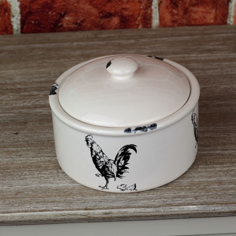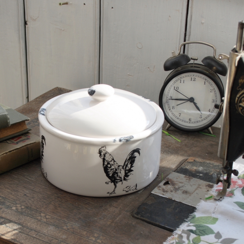 Dóza s kohoutem z nové kolekce kuchyňských doplňků ve venkovském stylu. Pro oblíbený chalupářský styl není nic typičtějšího, než keramika s motivy hospodářských zvířat. Co myslíte?