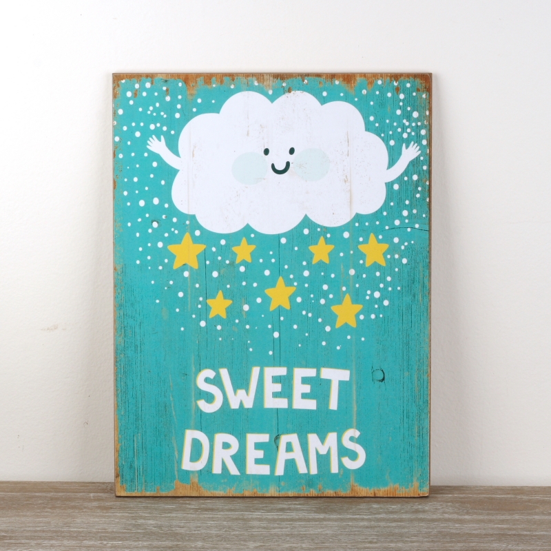 Dřevěná cedule do dětského pokoje Sweet Dreams 30x40cm je hravou a veselou dekorací do míst, které patří jen a jen dětem.