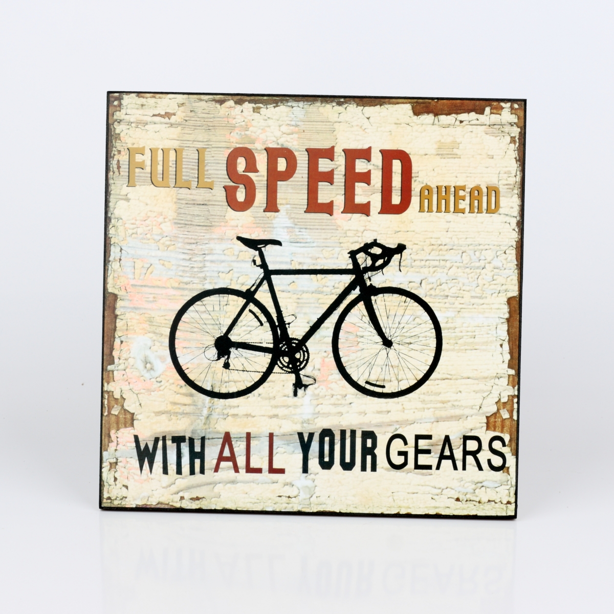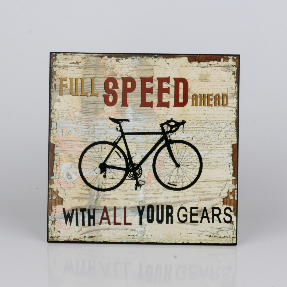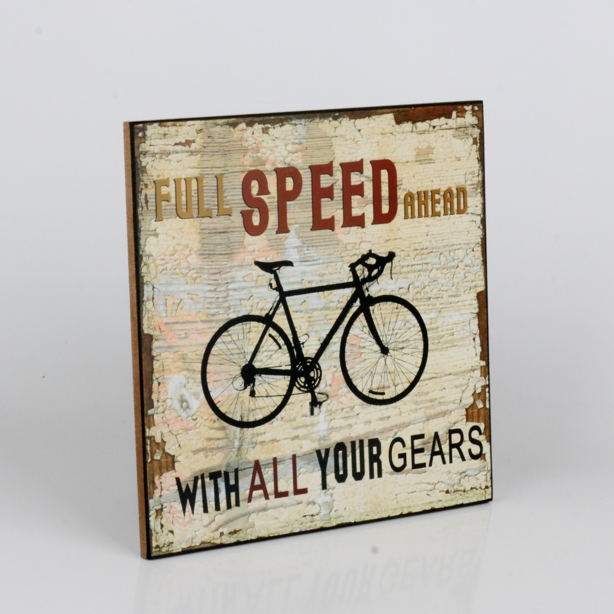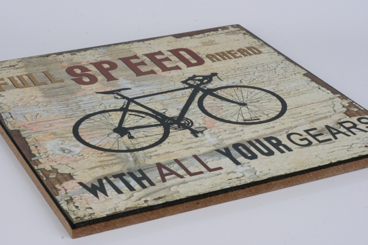 Dřevěná cedule Full speed ahead 25x25cm pro milovníky adrenalinu a jízdy na dvou kolech.