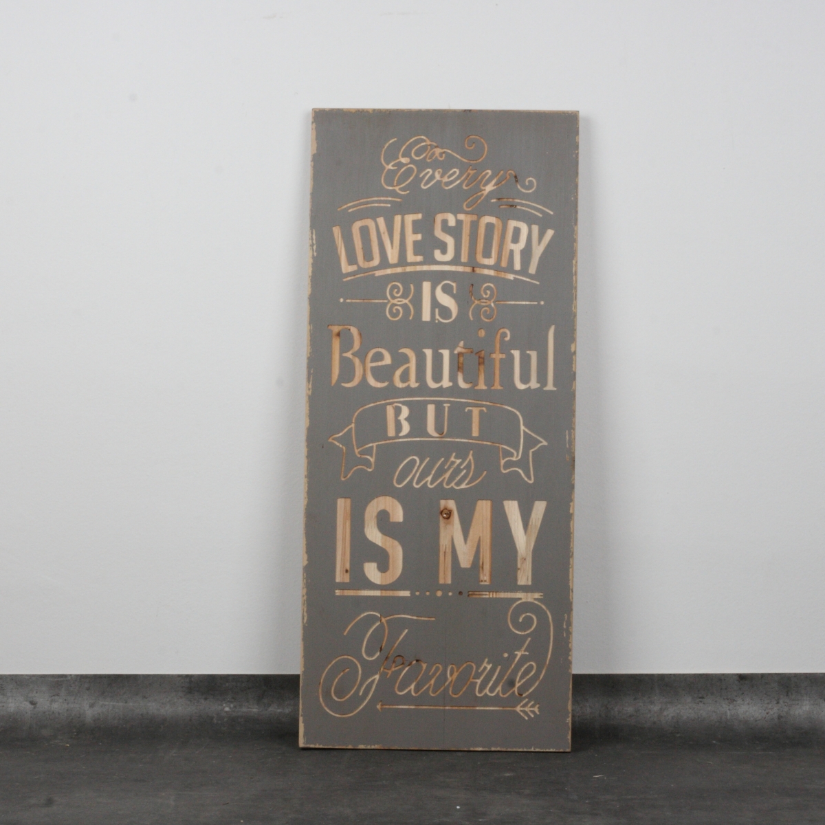 Dřevěná cedule Love story 78x33cm pro ty, kteří mají rádi originální a zajímavé doplňky interiéru. Cedule jsou skvělým způsobem, jak vyjádřit své myšlenky , postoje nebo životní motto.