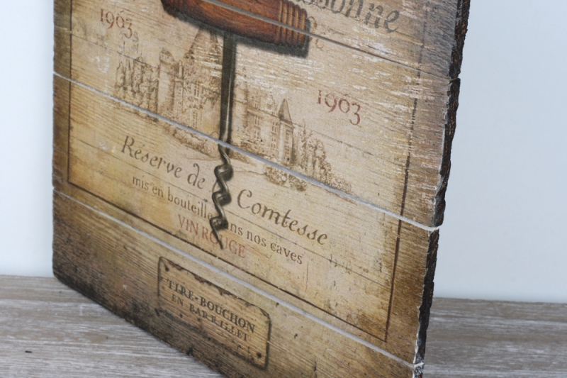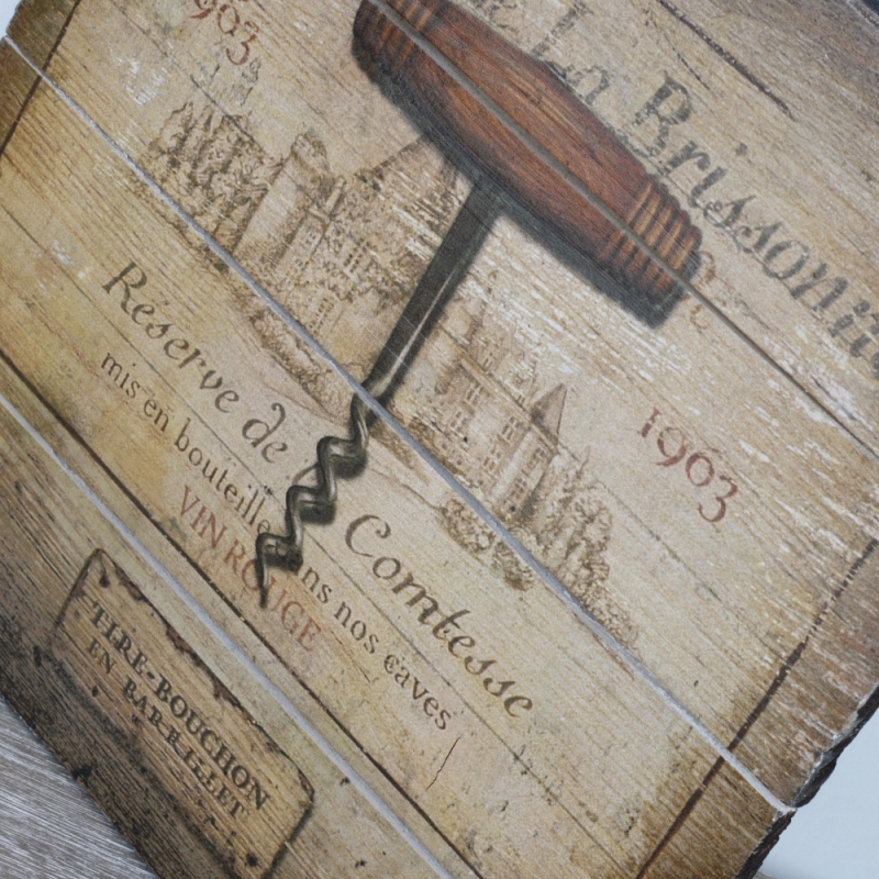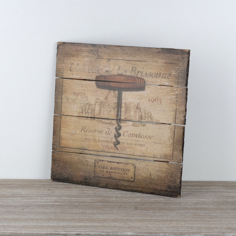 Dřevěná cedule je tvořena ze čtyř prken s krásným vintage motivem Chateau de La Brissonne.