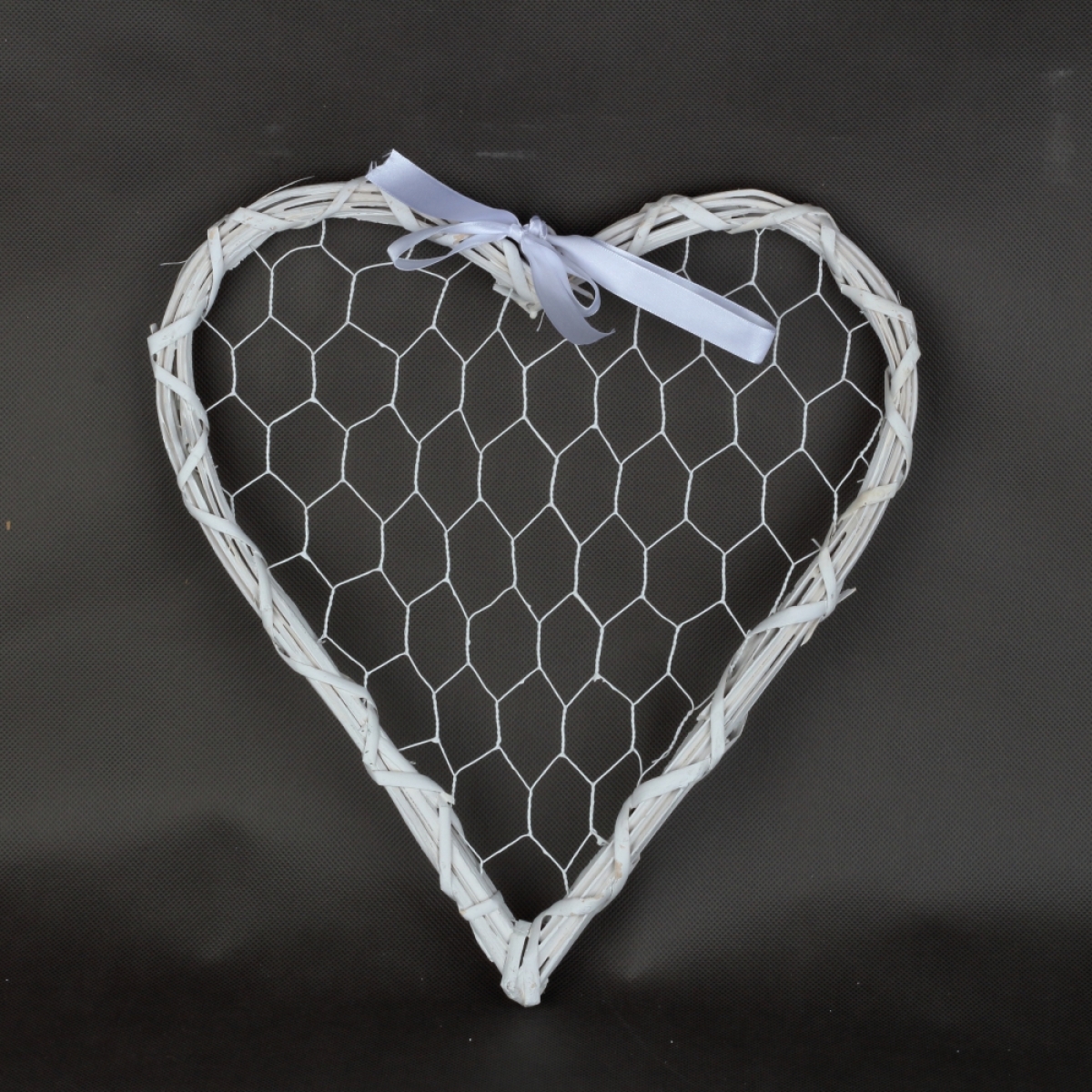 Dřevěná dekorace/nástěnka srdce bílé 30x35×2cm