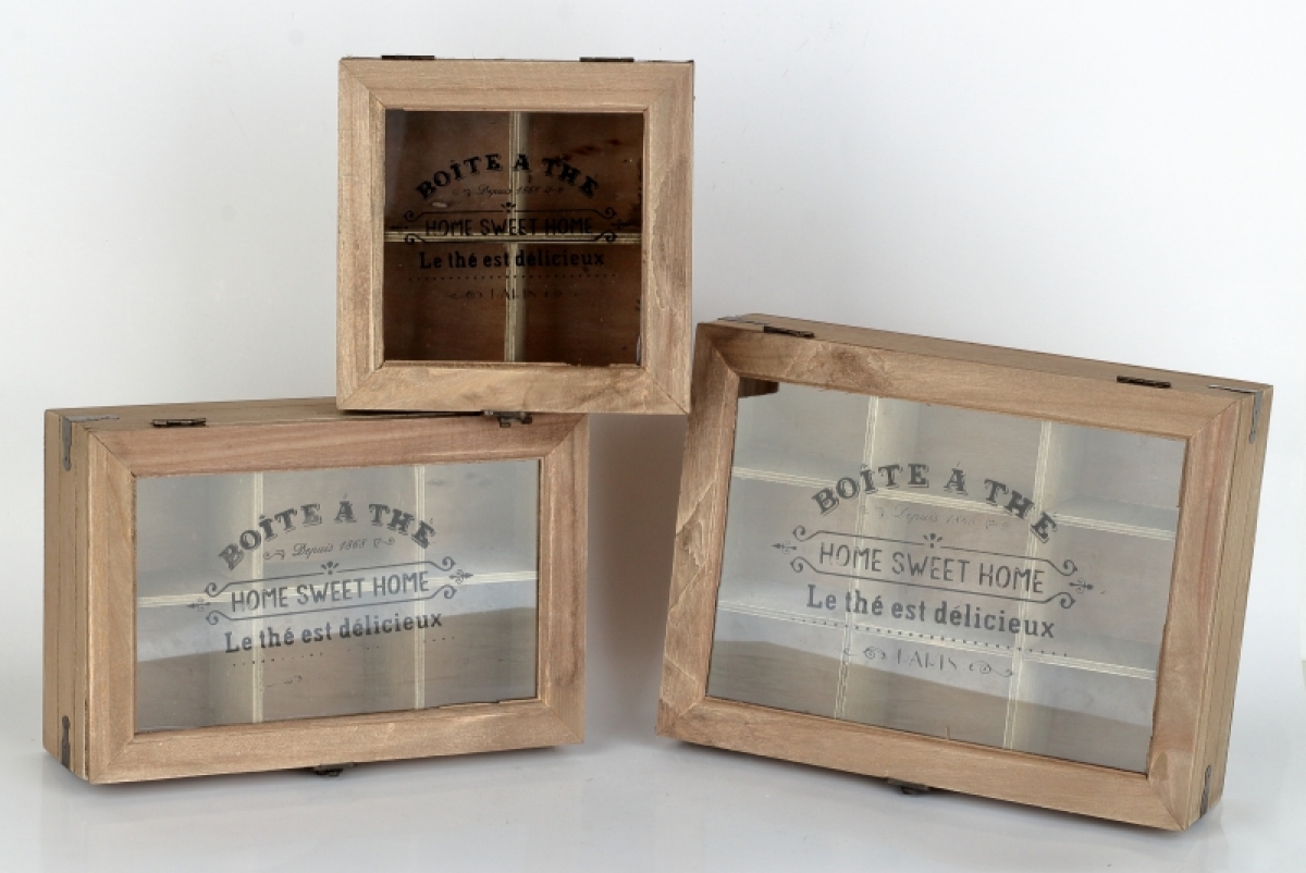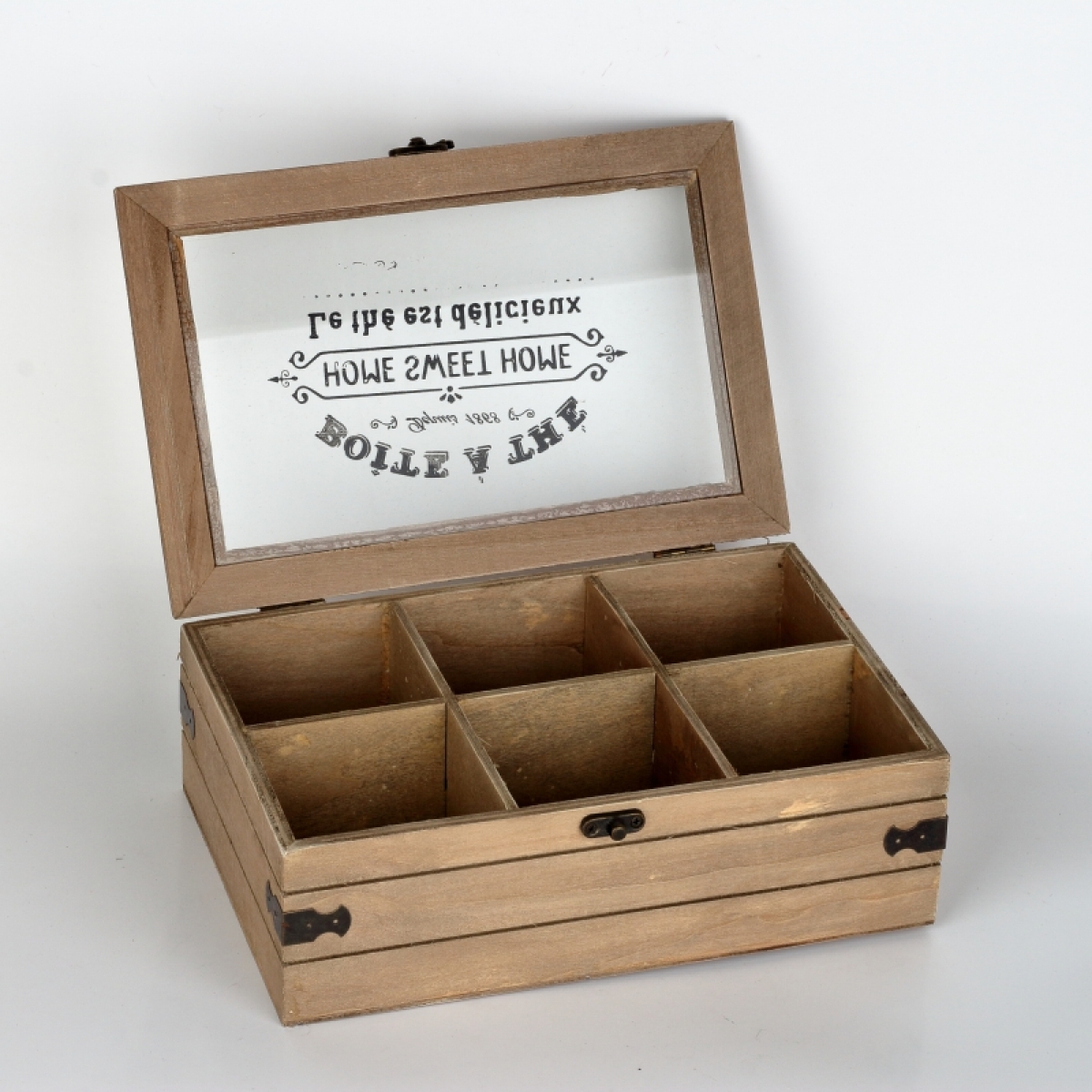 Dřevěná krabička se zdobeným sklem s nápisem HOME SWEET HOME je určena především pro rozdělení šesti nejoblíbenějších čajů pro vaši chvilku pohody.