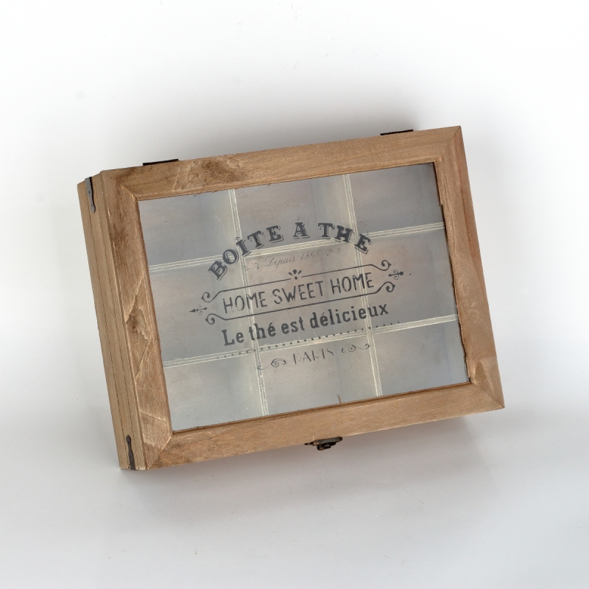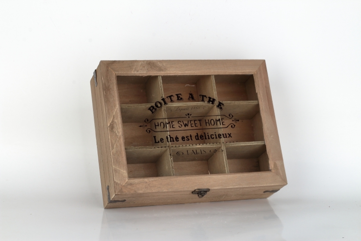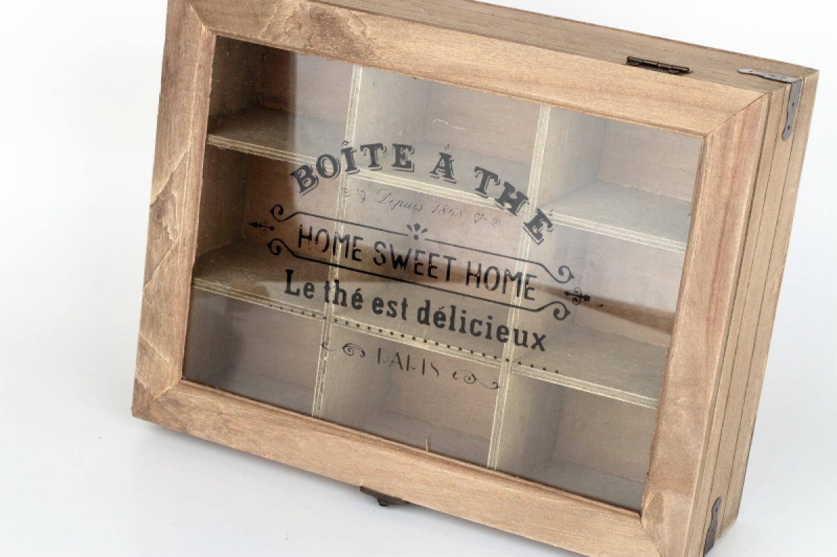 Dřevěná krabička se zdobeným sklem s nápisem HOME SWEET HOME je určena především pro rozdělení devíti nejoblíbenějších čajů pro vaši chvilku pohody.
