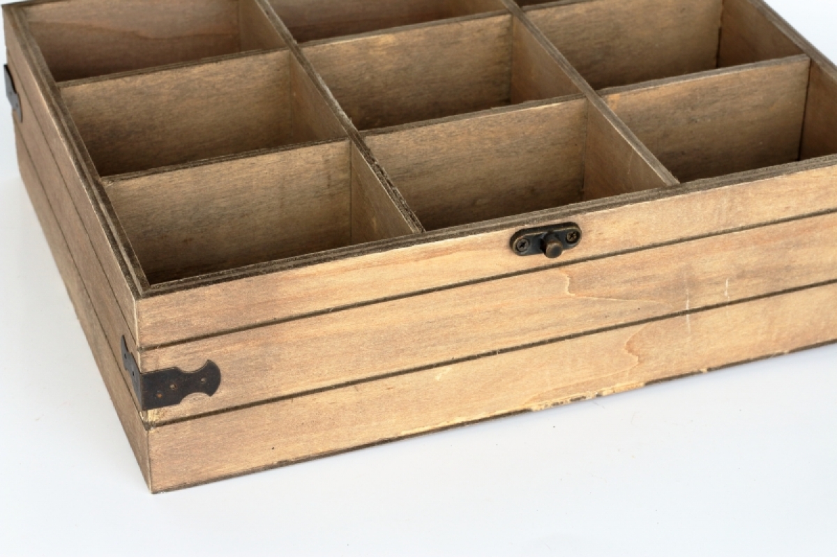 Dřevěná krabička s devíti přihrádkami na čaj, nebo osobní klenoty.