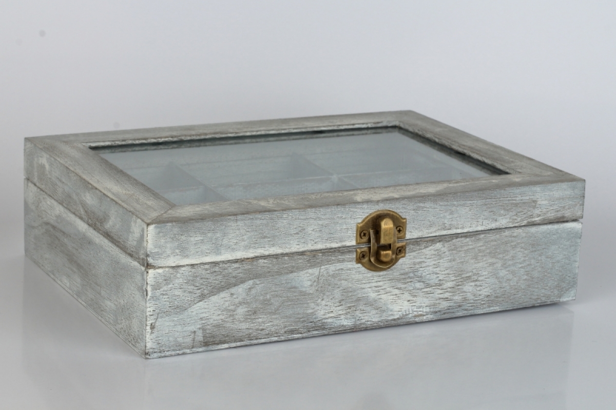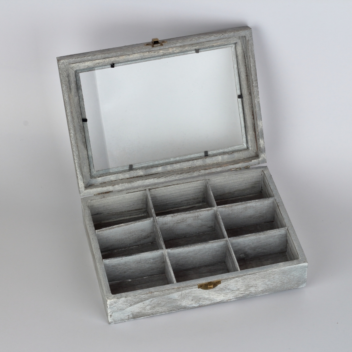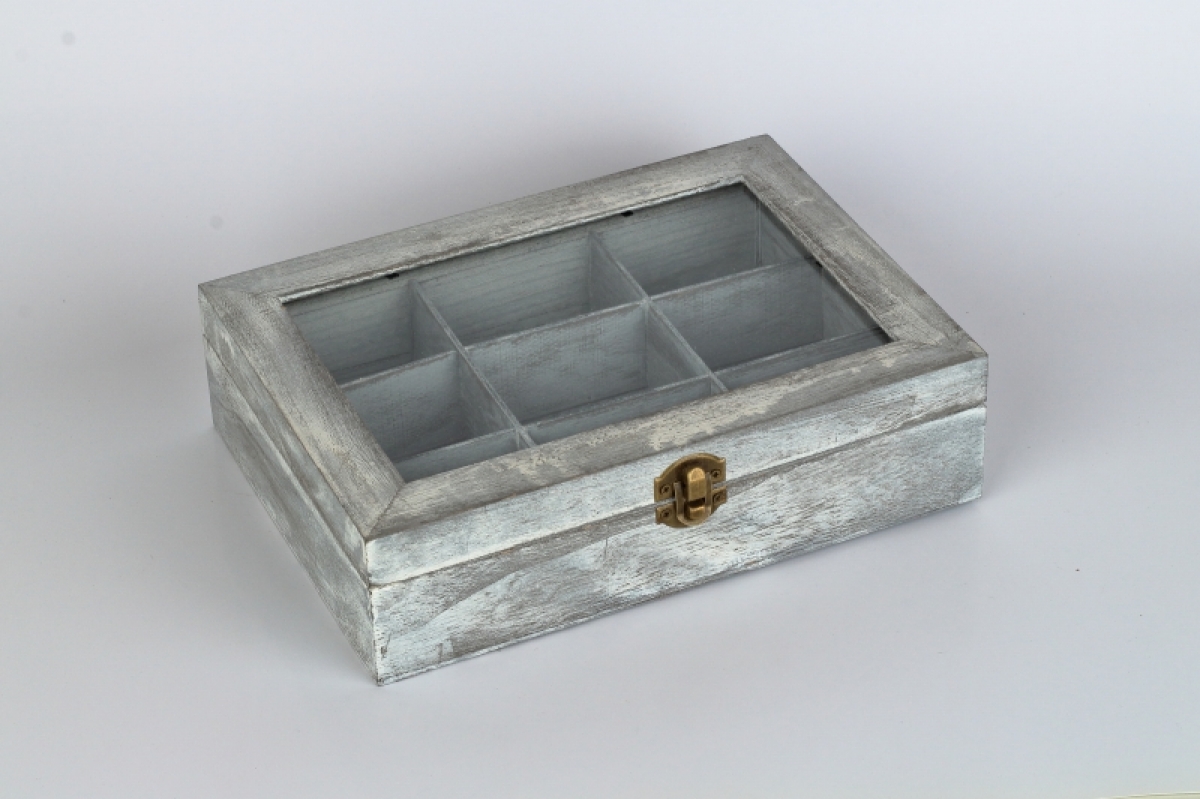 Dřevěná krabička na čaj 9 přihrádek 24x18x7cm