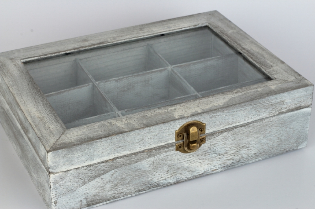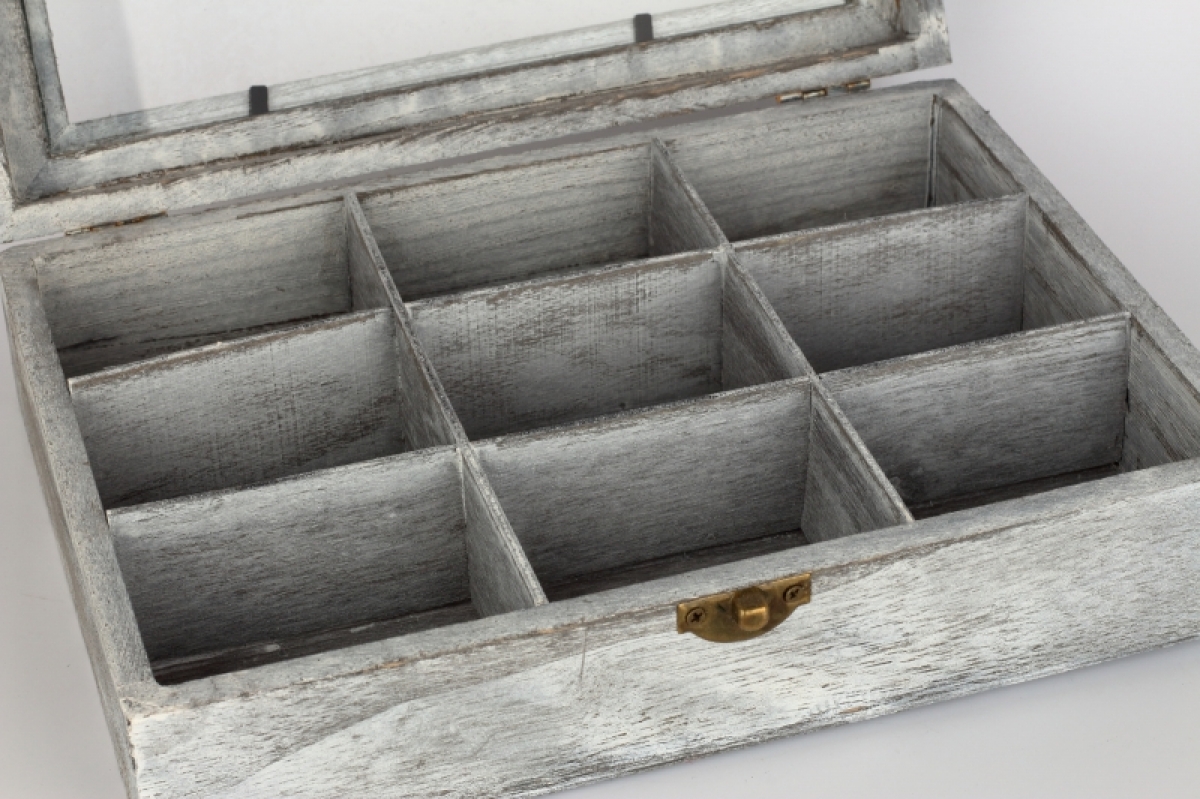 Dřevěná krabička na čaj 9 přihrádek 24x18x7cm je praktickým způsobem, jak skladovat porcovaný čaj.