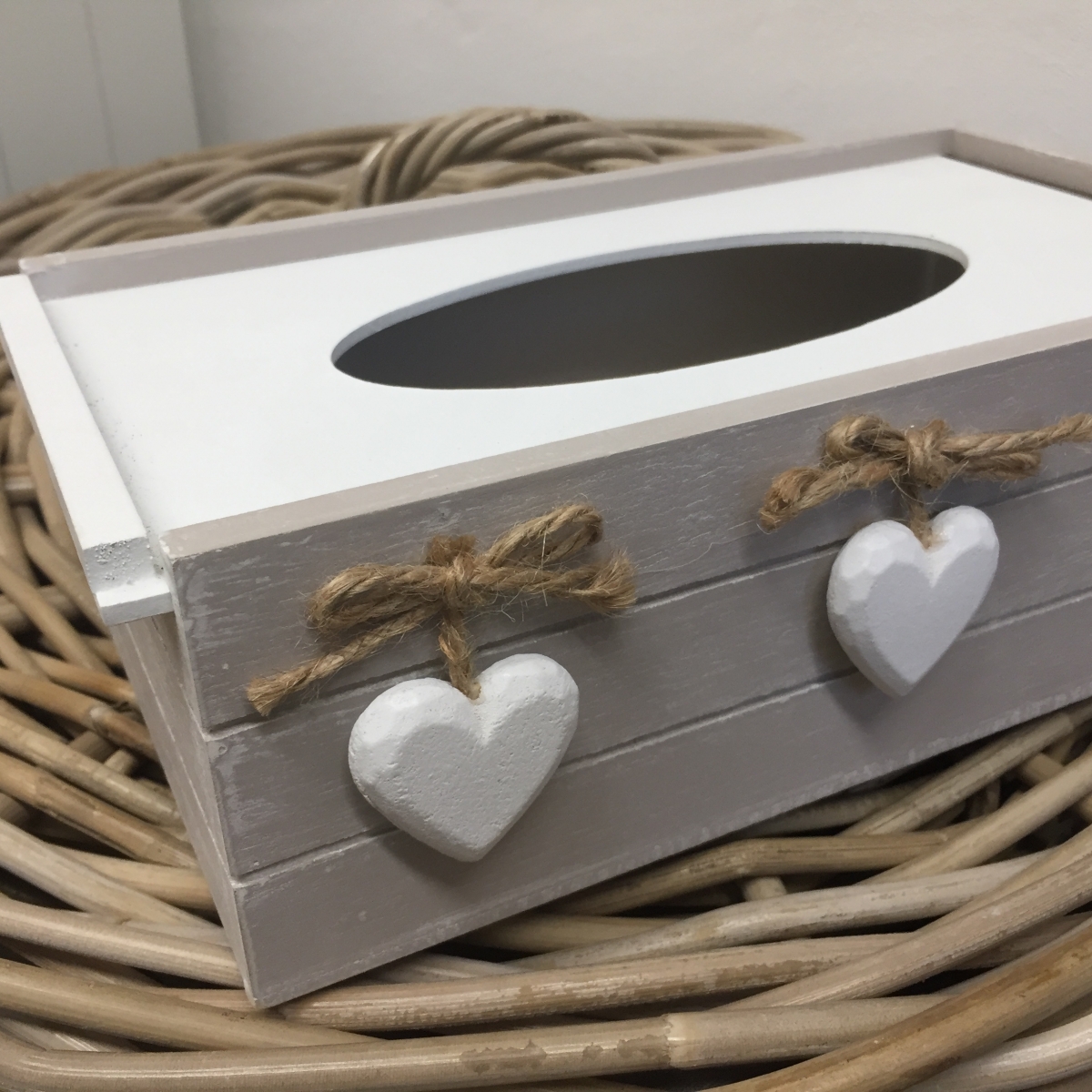 Dřevěná krabička na kapesníky hnědá 3 srdce 26x15x8,5cm slouží k ukrytí nevzhledných papírových krabic, které zbytečně přitahují pozornost očí.
