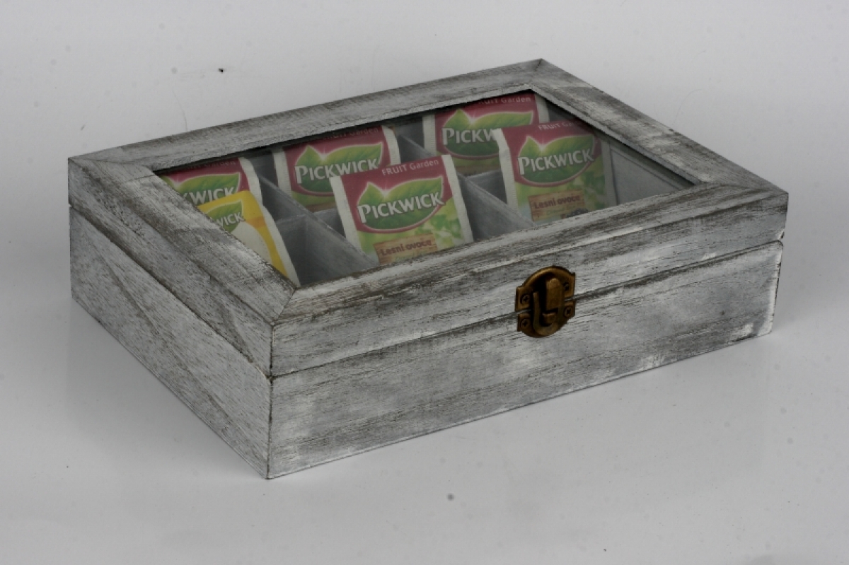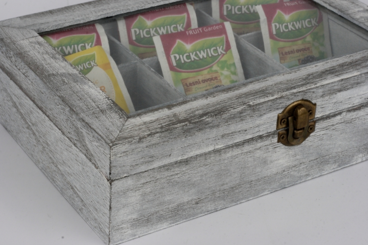 Dřevěná krabička s patinou na čaje 24x17x6cm