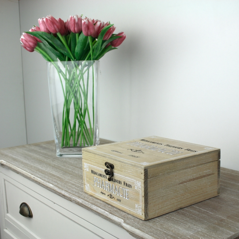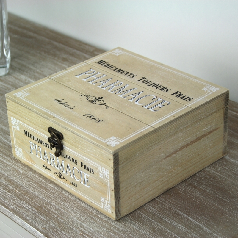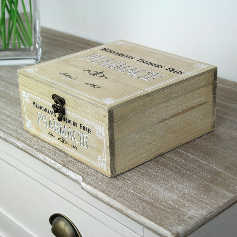 Dřevěná lékárnička Pharmacie na všechny běžné léky, které máte doma v zásobě. Léky by měly být skladované pohromadě a především v bezpečné vzdálenosti od dětí. To v této krabičce nebude problém. Může být krásnou vintage dekorací na té nejhořejší polici v koupelně.