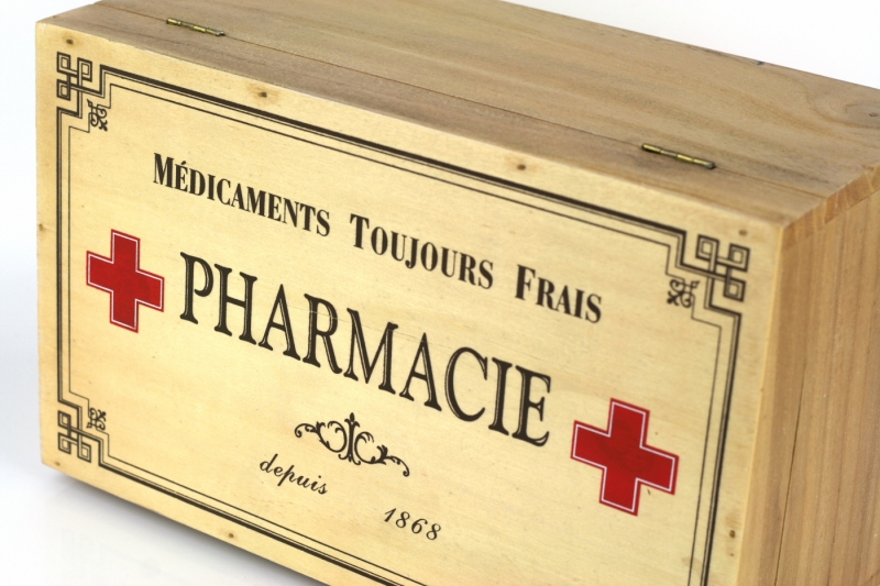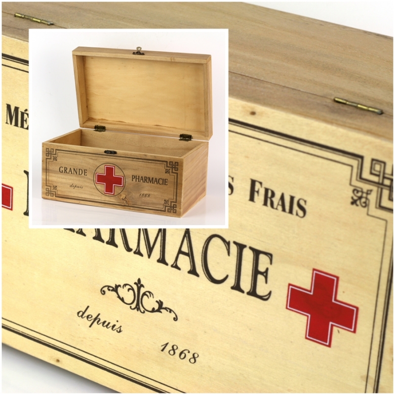 Dřevěná lékárnička Pharmacie 30x18cm vás zachrání ve chvíli, kdy vám není do smíchu. Mějte všechny potřené léky po ruce v šikovné krabici.