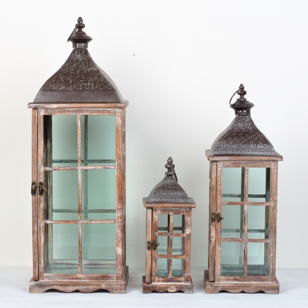 Lucerna má odklápěcí boční dvířka, snadno tak do ní vložíte velkou svíčku (můžete použít i LED svíčku, kterou nebudete muset hlídat). Lucerna je ze sady 3ks, jednotlivé lucerny jsou však v nabídce samostatně. Další dvě lucerny mají rozměry 60cm/ 79cm.