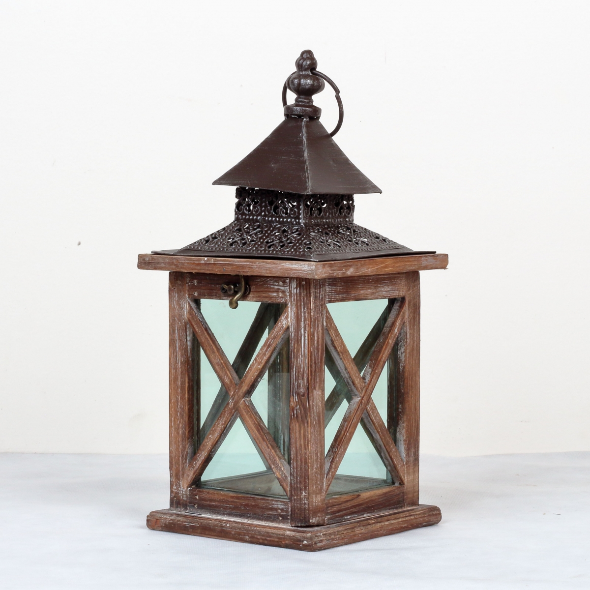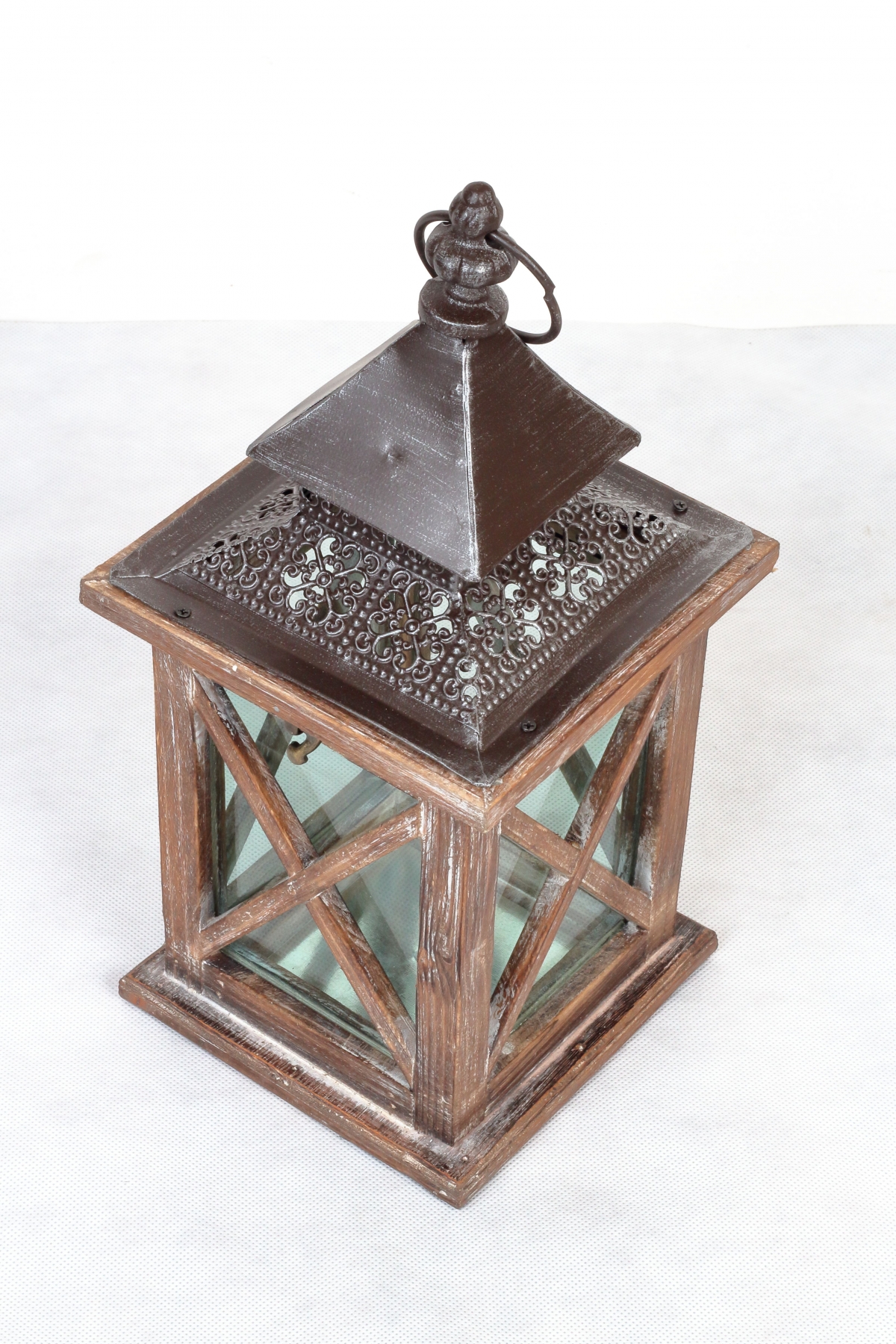 Dřevěná lucerna tmavá s kovovou stříškou 36cm
