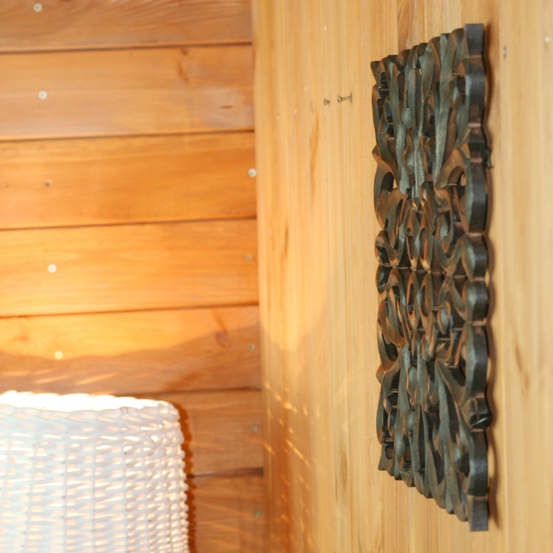 Náš tip: řezba krásně vynikne na světlé stěně, zkusit můžete také umístit např. tři stejné panely vedle sebe.