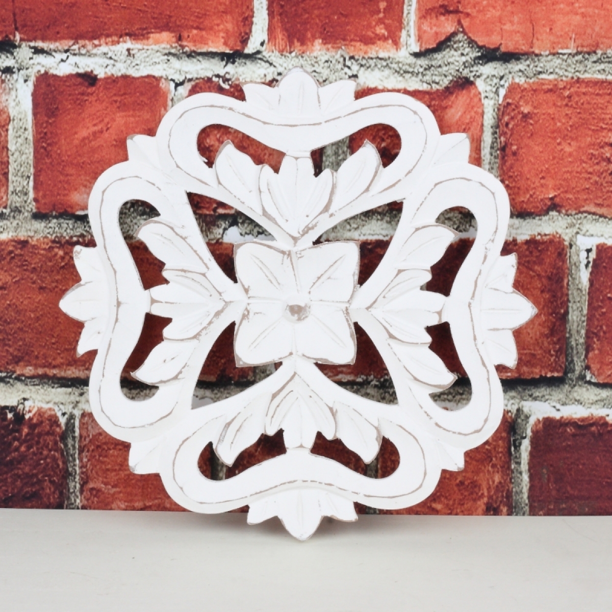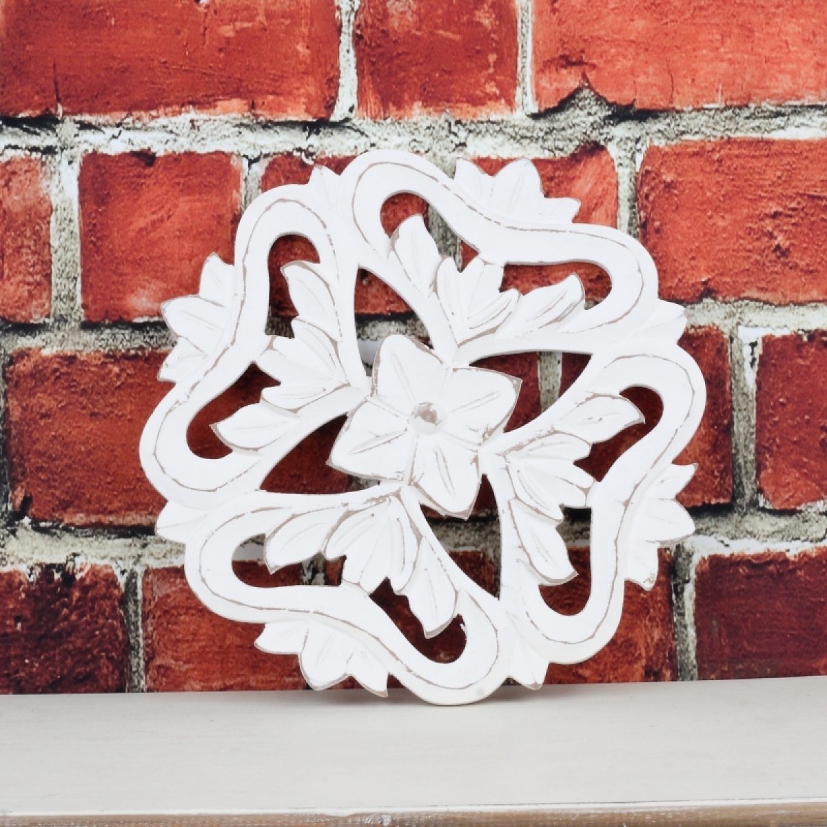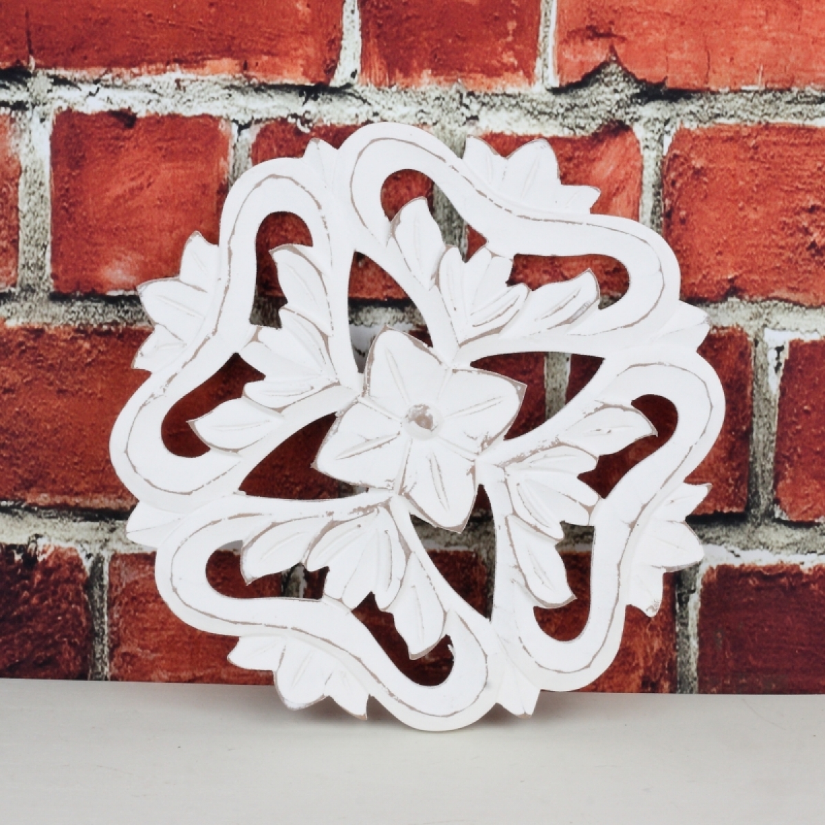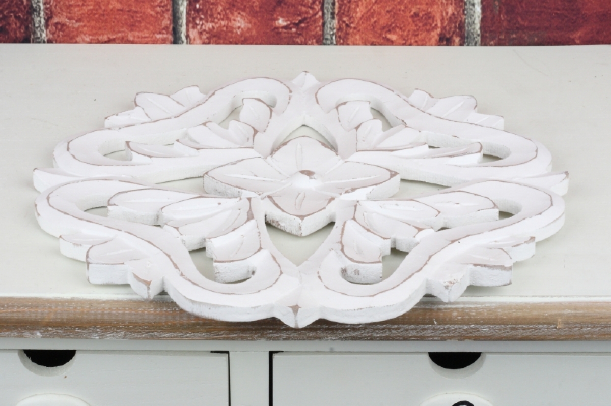 Dřevěná nástěnná dekorace květina 30x30cm bude hezkým doplňkem interiéru. Je krásně detailně vyřezávaná a natřená bílou barvou.