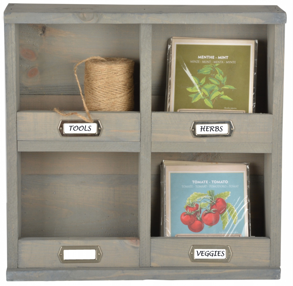 Dřevěná nástěnná police /organizér 39cm Vám umožní udržet pořádek a přehled ve všech drobnostech, které na zahradě máte. Ať už jsou to sáčky se semínky, provázky, nůžky a jakékoliv další dorbné pomůcky, vše budete mít na dosah ruky.