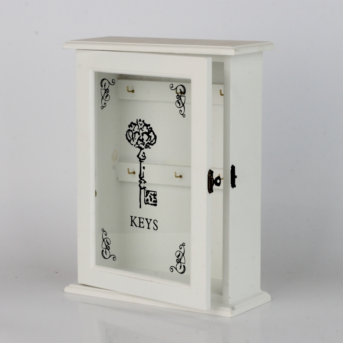 Dřevěná nástěnná skříňka na klíče bílá 30x21x9cm