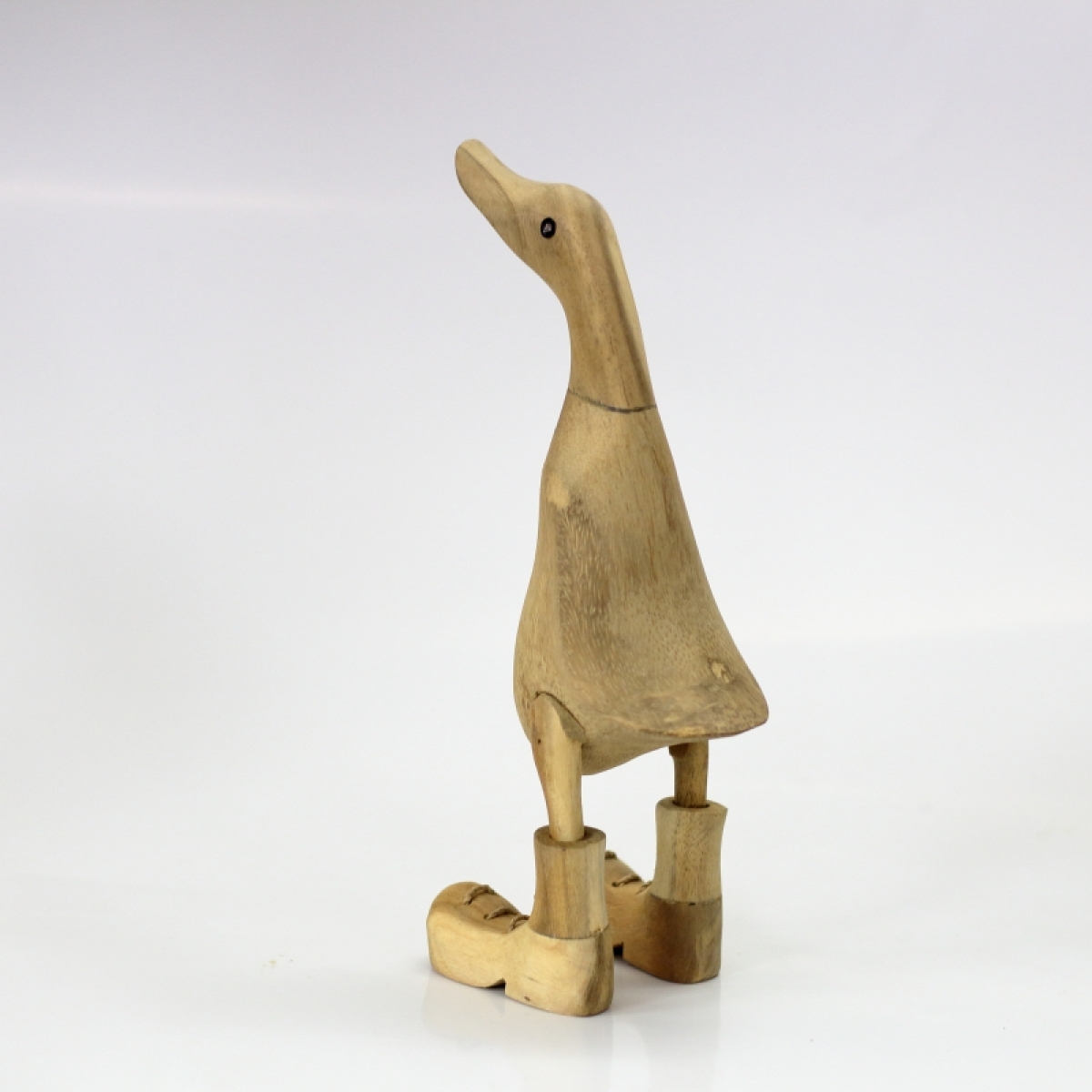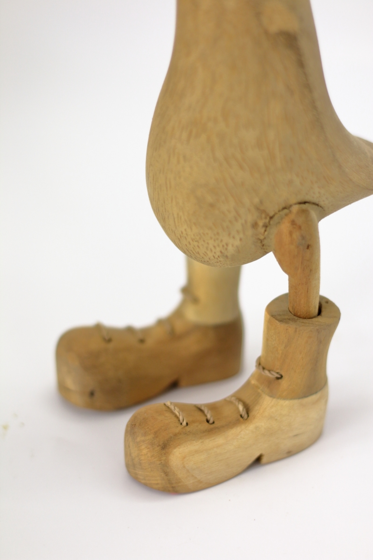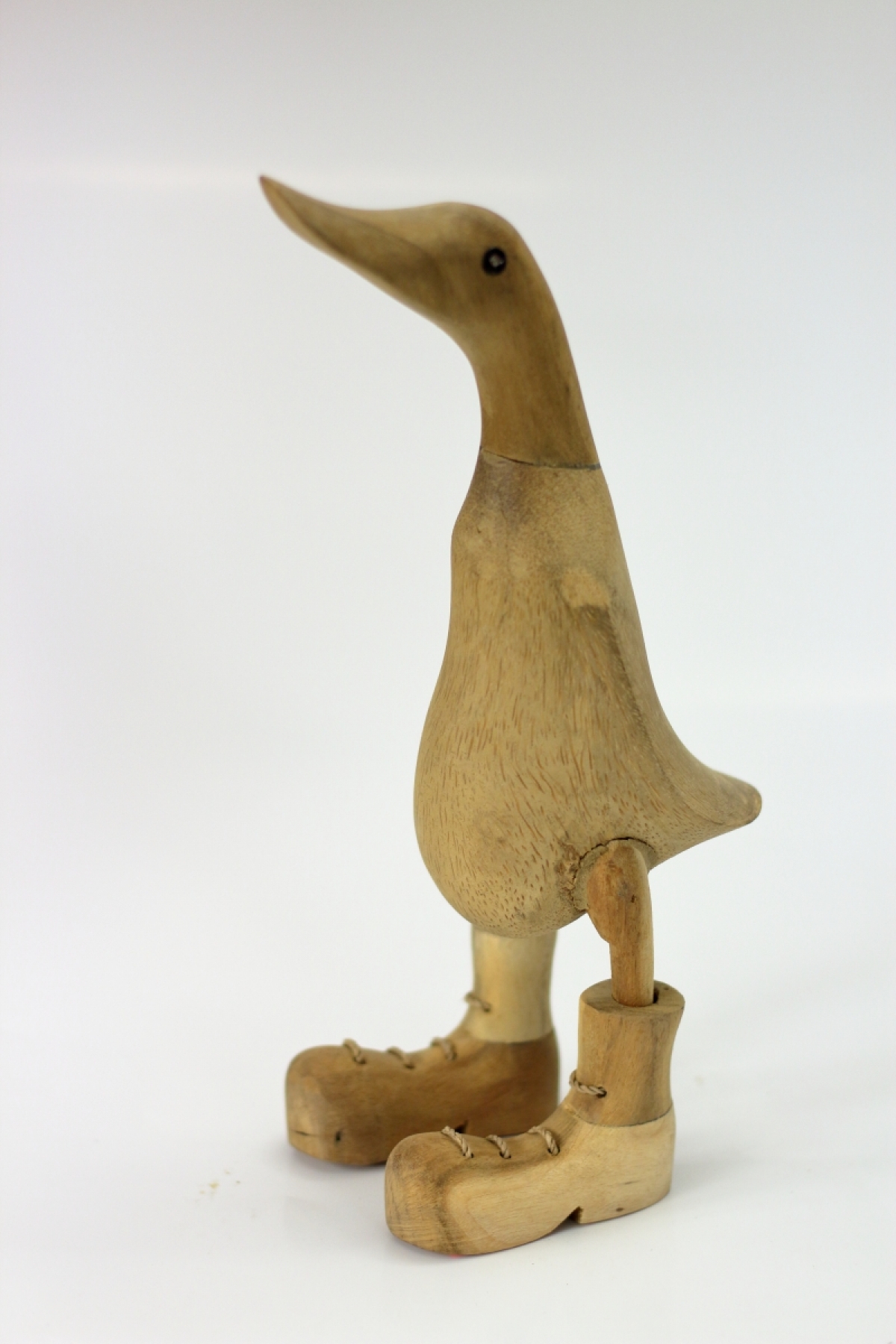 Dřevěná vyřezávaná soška kačk v botách 26cm 220g.