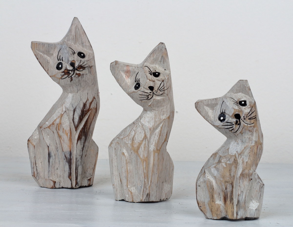 Dřevěná soška kočka 15/13/10cm (set 3ks)