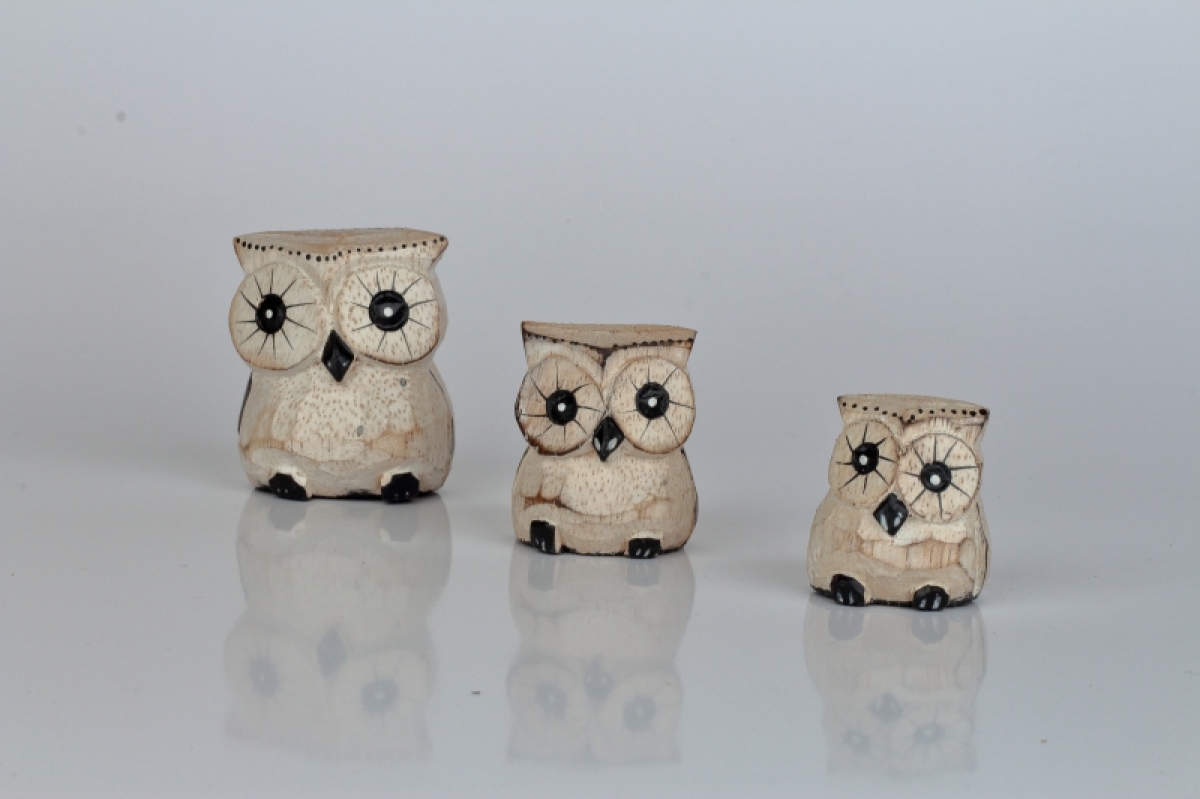 Dřevěná soška sova (sada 3ks) 6/4/3cm je milou pozorností a dárkem k jakékoli příležitosti.