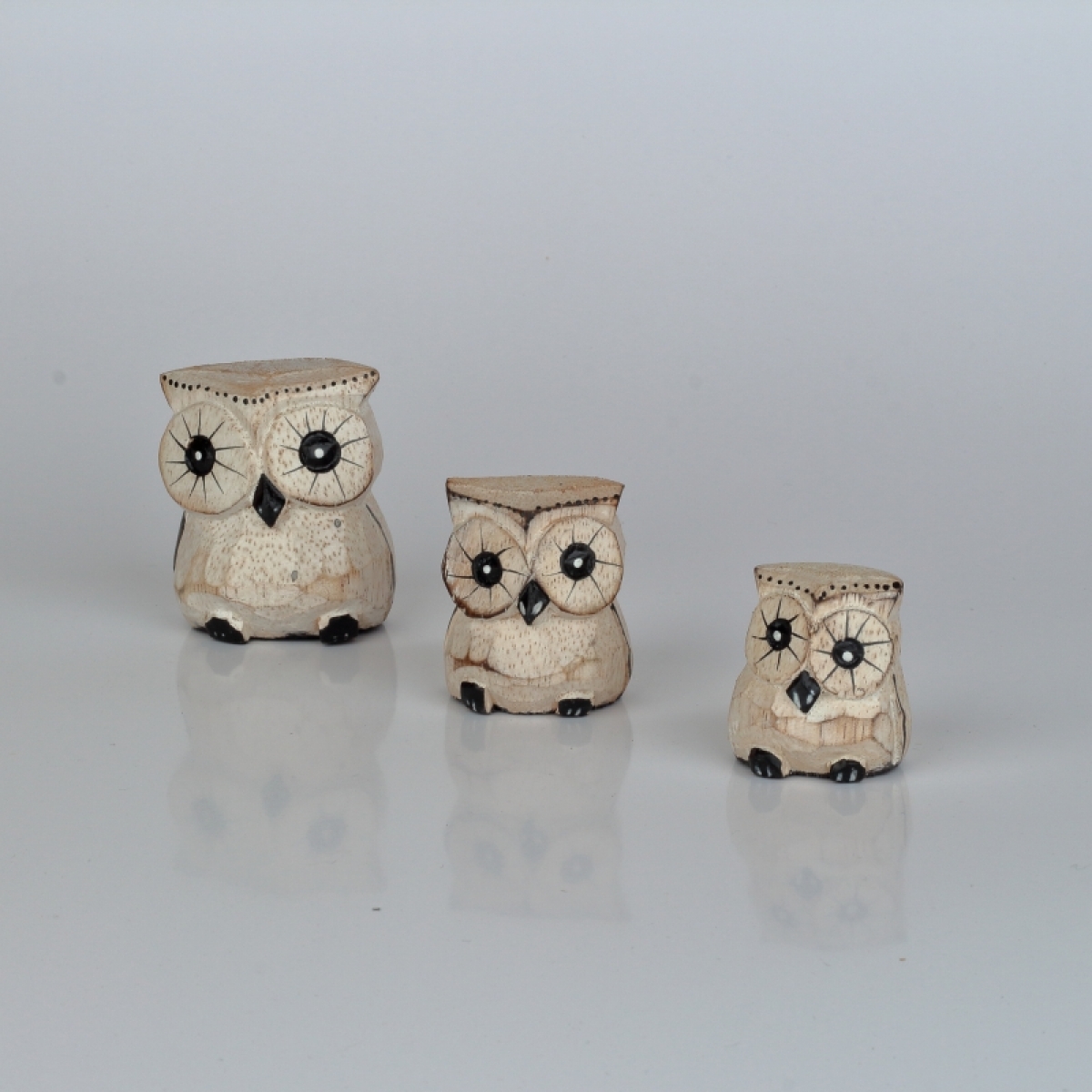 Dřevěná soška sova (sada 3ks) 6/4/3cm