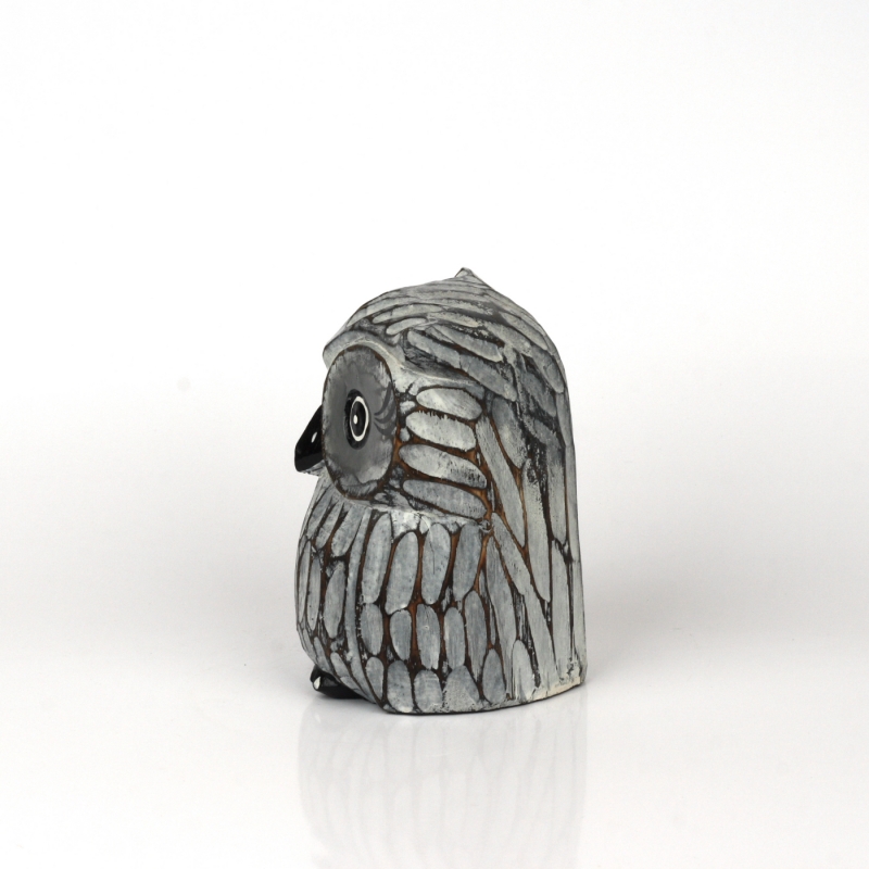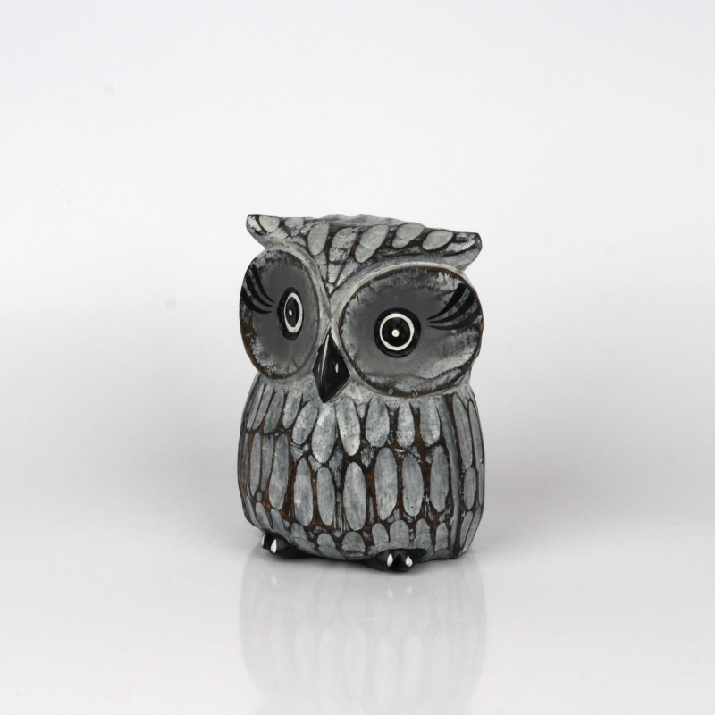 Dřevěná soška sova šedá 16cm