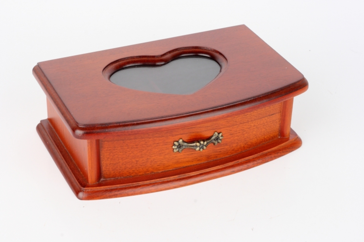 Dřevěná šperkovnice se srdcem 18x11x6cm