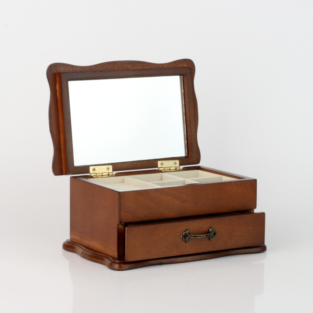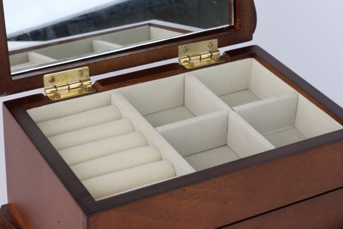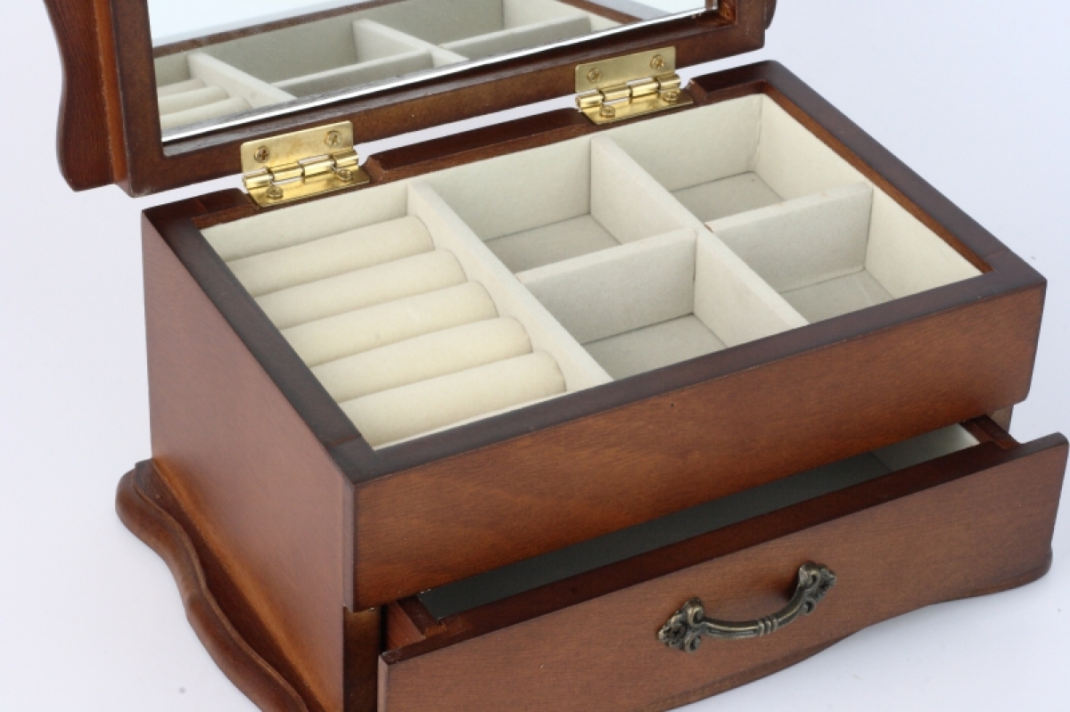 Dřevěná šperkovnice se zrcadlem 20x13x10cm slouží k ukládání náušnic, řetízků, náramků i prstenů. Vejdou se do ní všechny Vaše poklady.