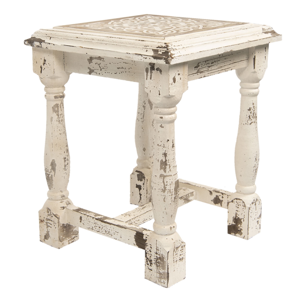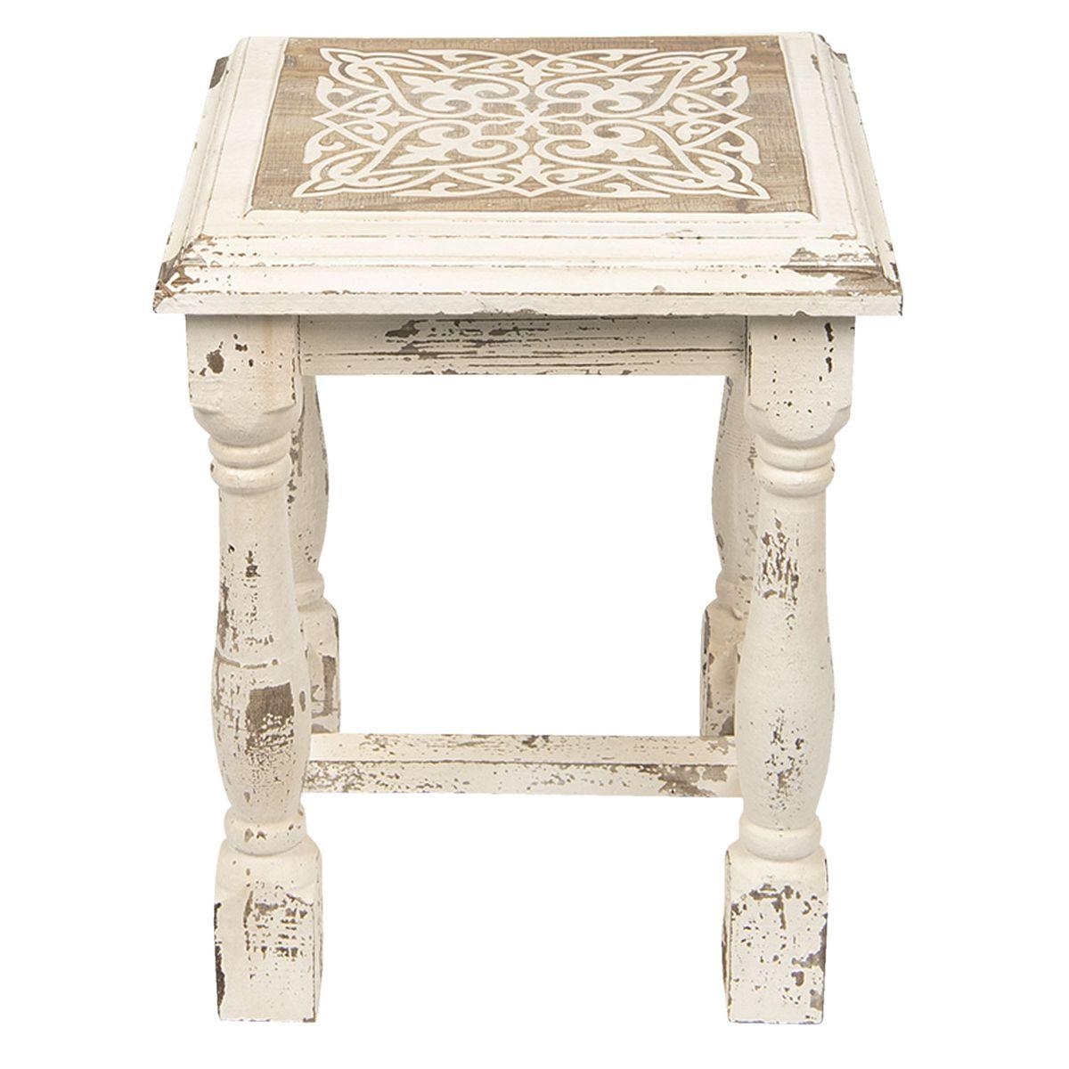 Stolička bude i krásným odkládacím stolečkem v obýváku,, případně květinovým stolkem. Dřevo s patinou a ornamenty vypadá dokonale!