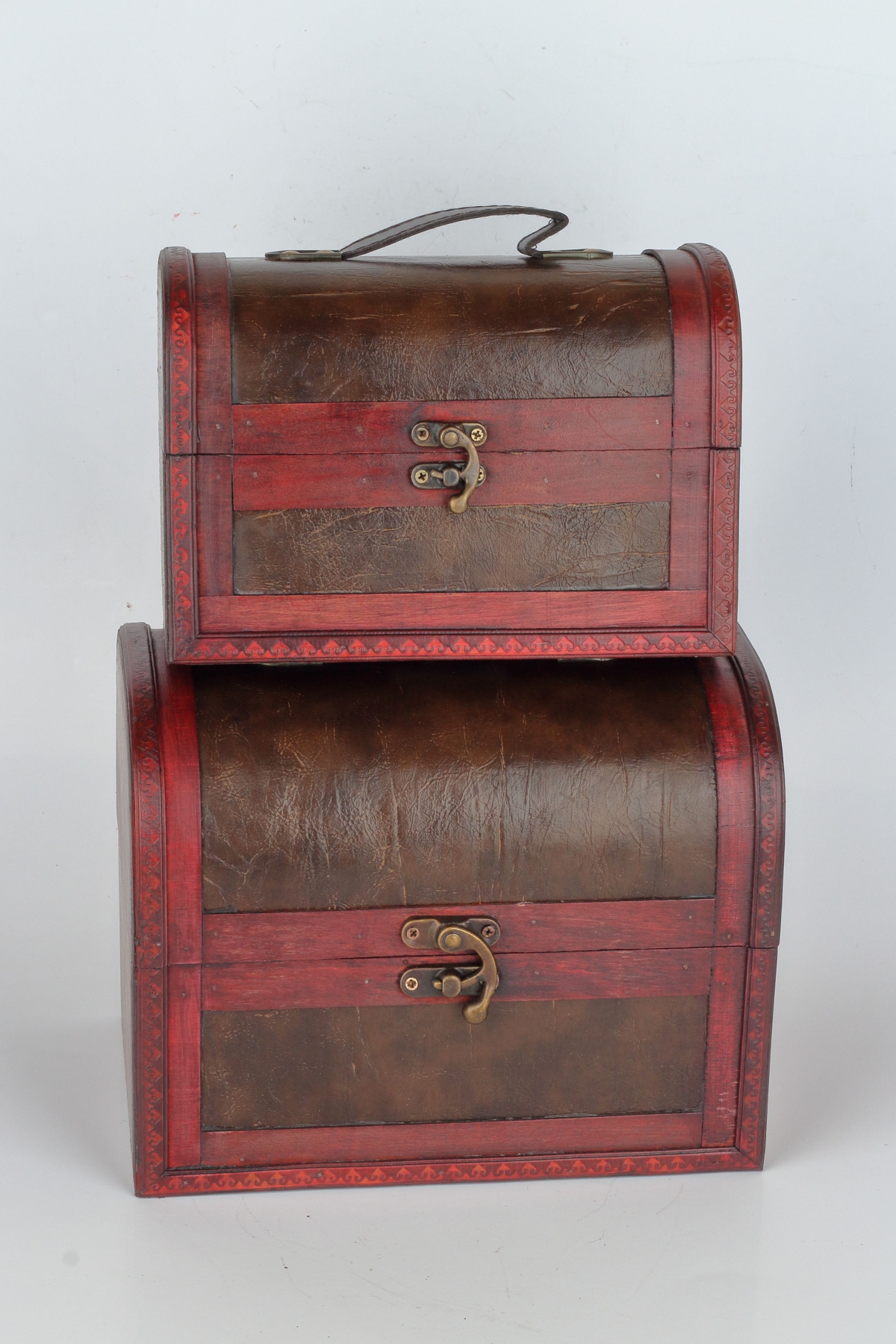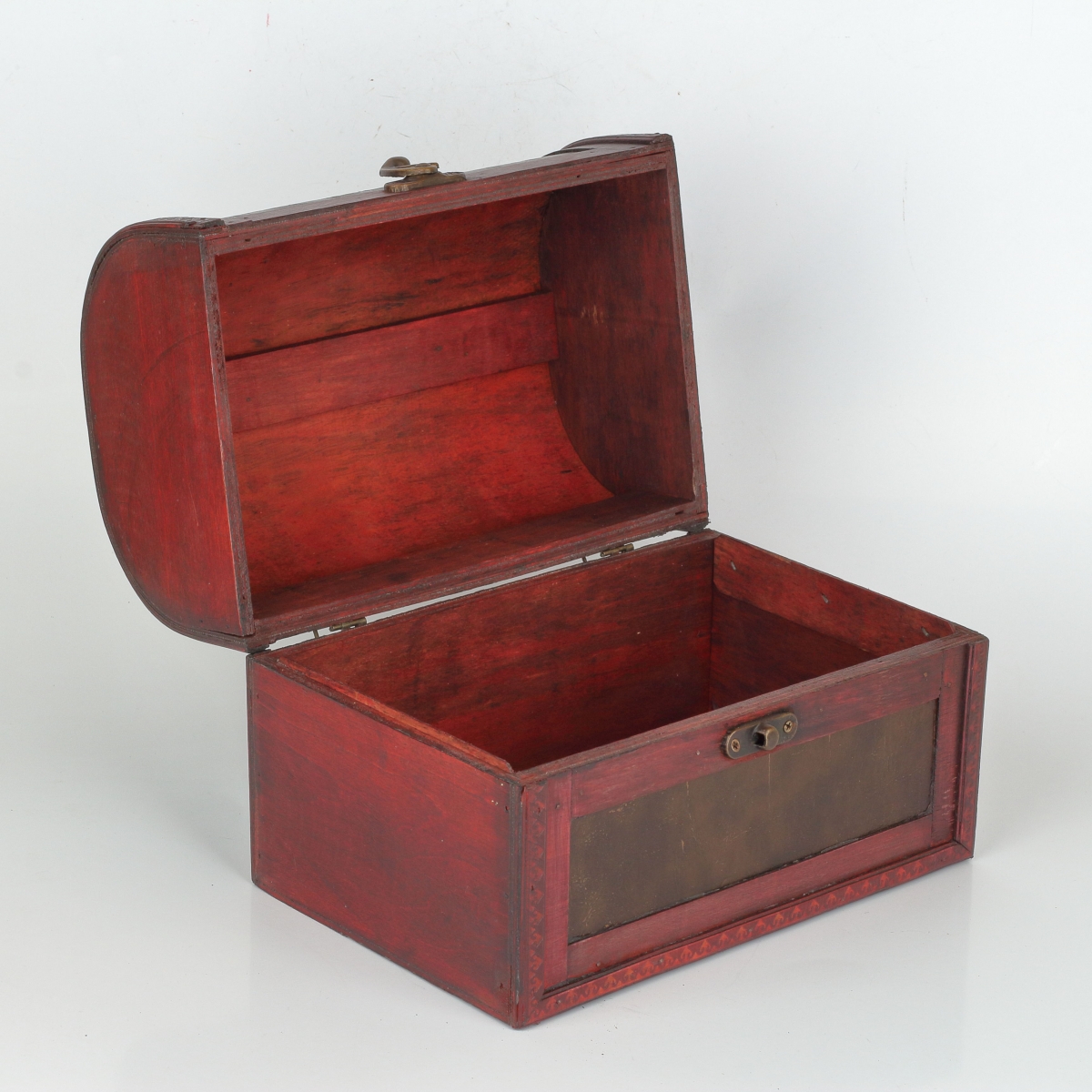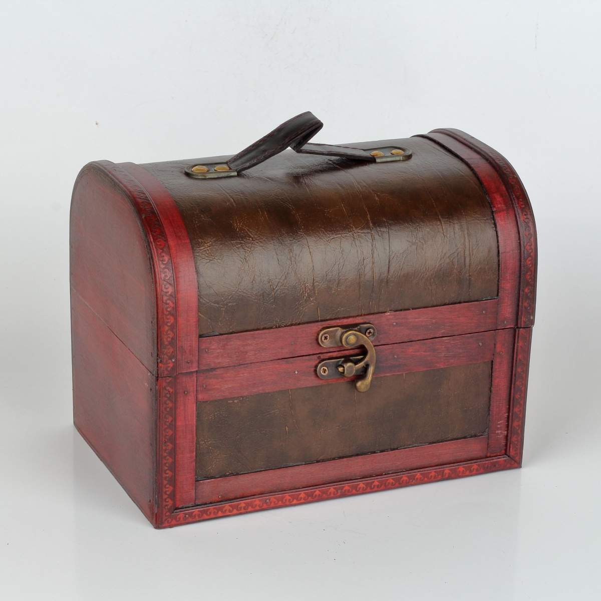 Dřevěná truhla 24x16x19cm poslouží jako úložný prostor na spoustu maličkostí a zároveň bude krásným doplňkem interiéru. Má výrazný odstín červené.
