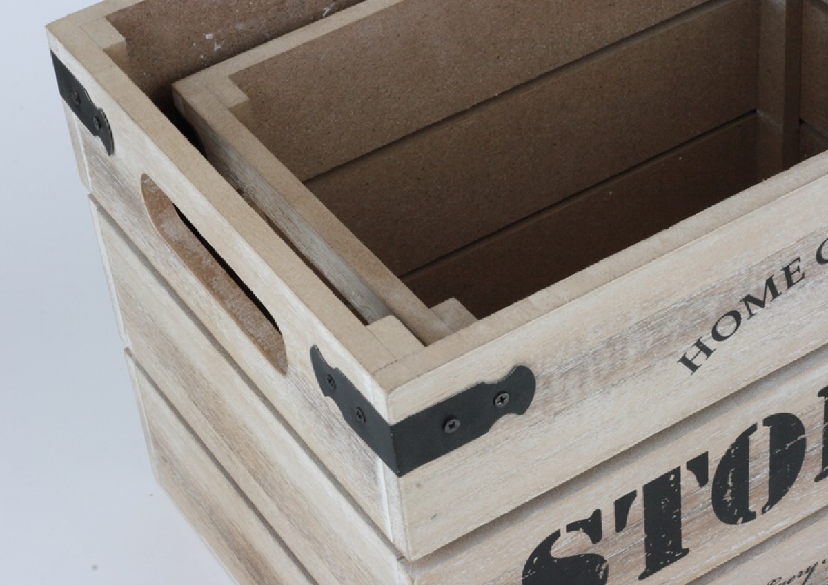 Dřevěné dekorační bedny STORAGE 2ks na ukládání všemožných věcí, které mají zůstat ukryty.