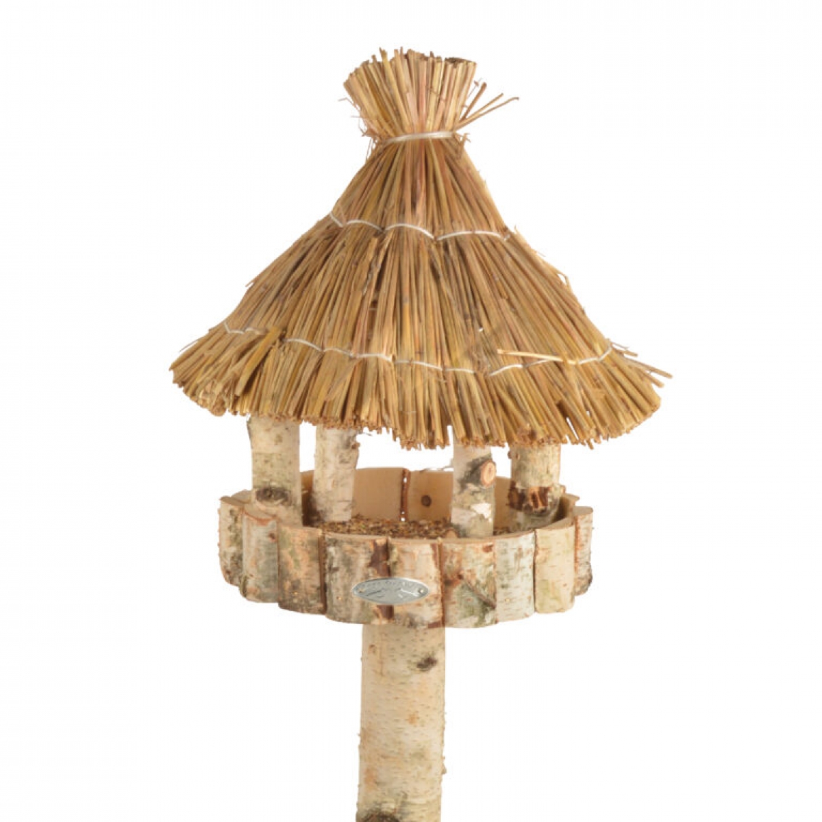 Krmítko je vyrobeno z dřevěných špalíčků březového a jedlového dřeva pro zachování přírodního designu, se stříškou krmítka ze sušeného rákosu.