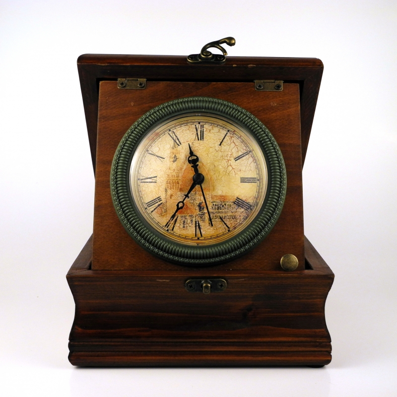 Dřevěné skládací hodiny v retro stylu o velikosti 22cm.