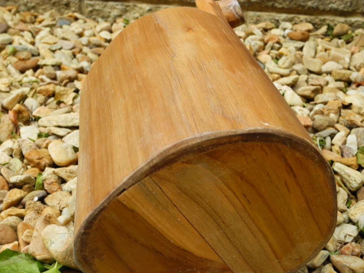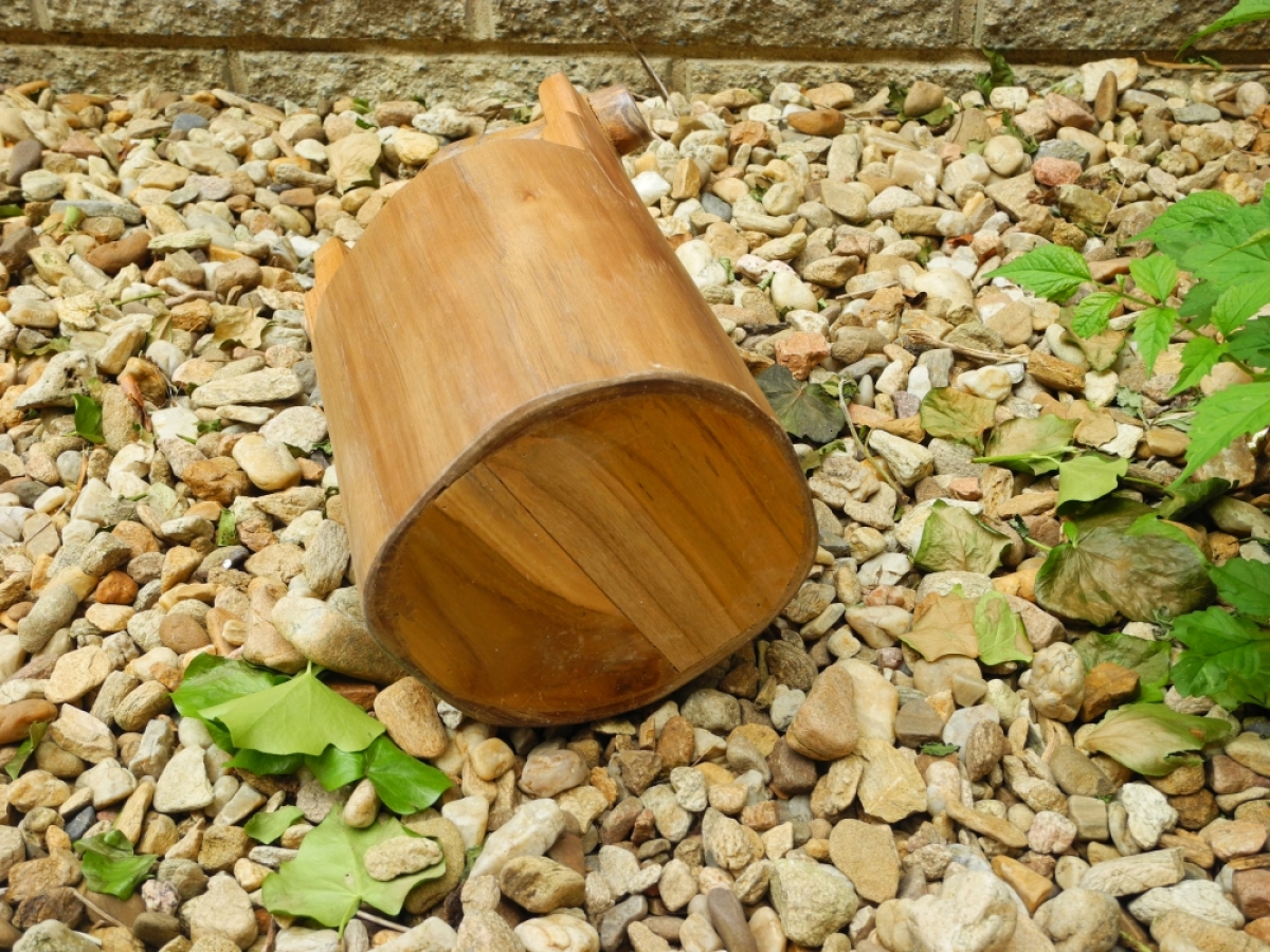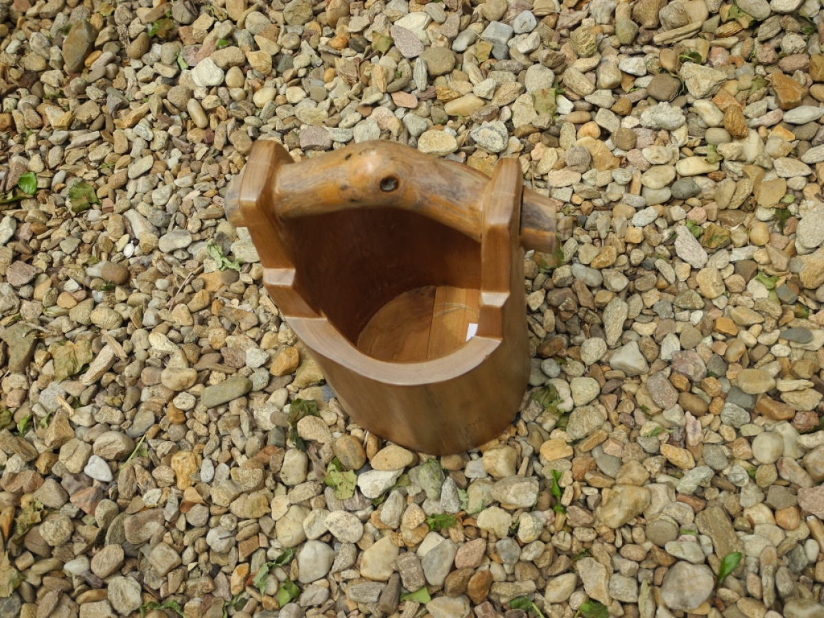 Dřevěné vědro z vykotlaného stromu.