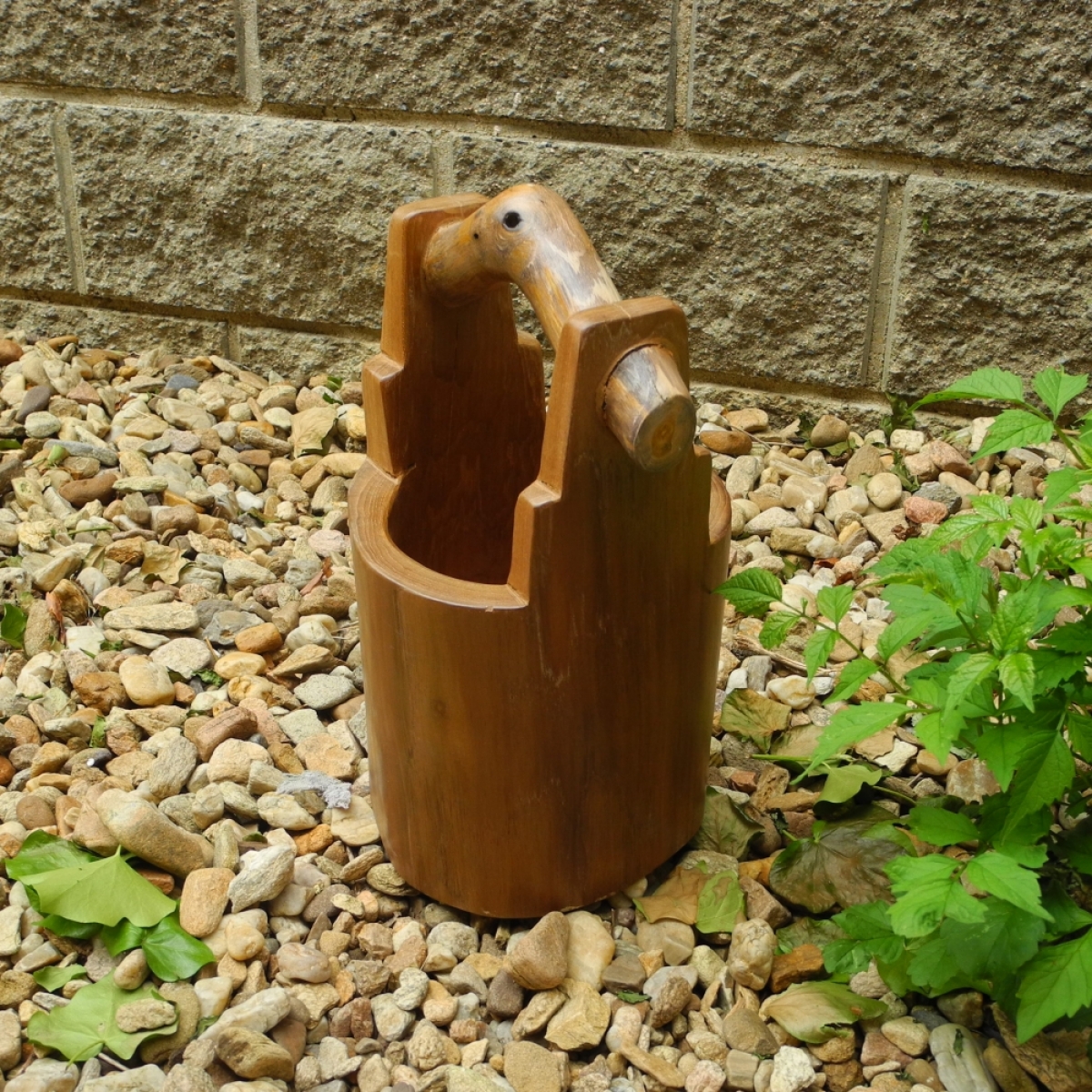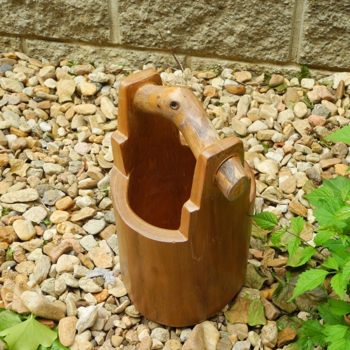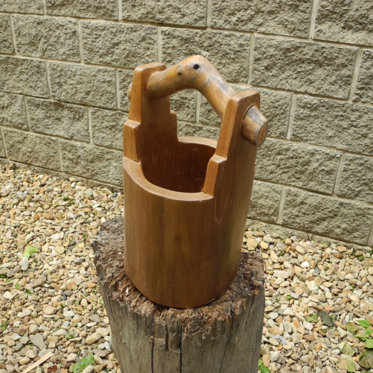 Dřevěné vědro z vykotlaného stromu.