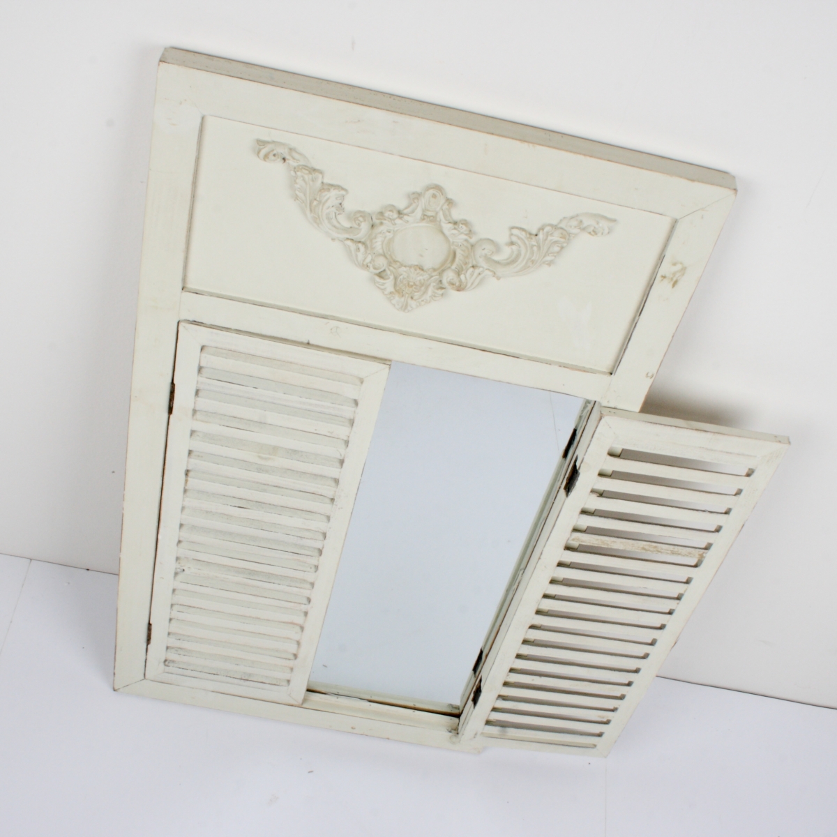 Zrcadlo má okenice na funkčních pantech. Horní část rámu zrcadla je zdobená ornamentem.