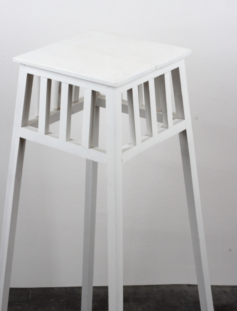 Dřevěný bílý květinový stolek 89cm - poškozeno