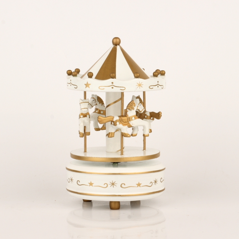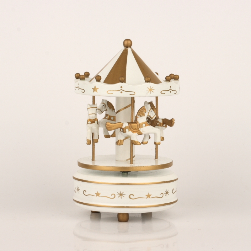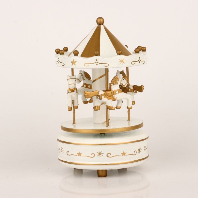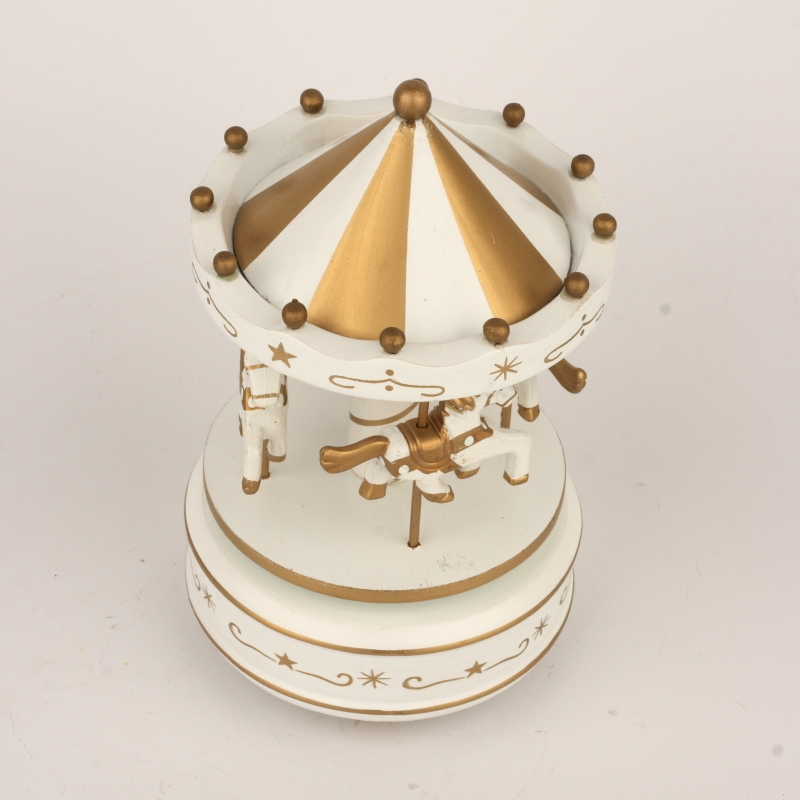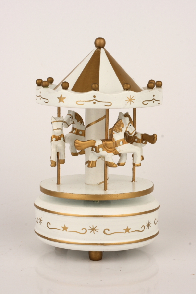 Dřevěný hrací kolotoč bílo-zlatý 19cm