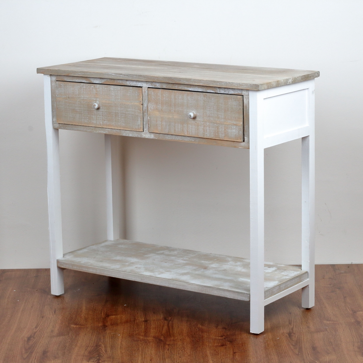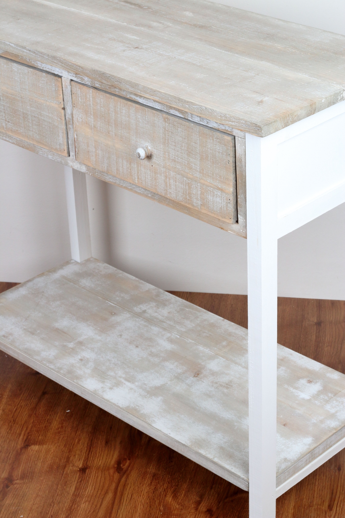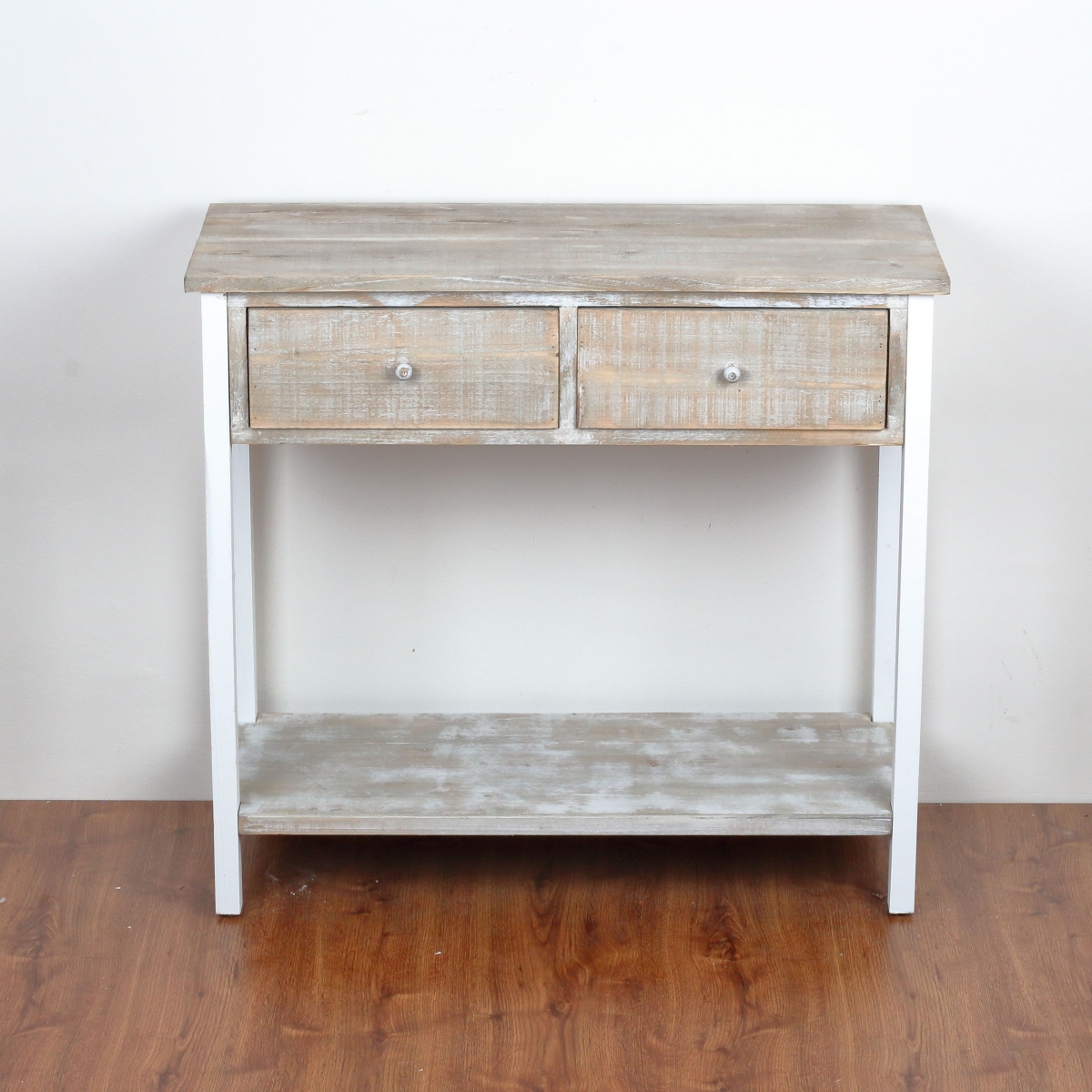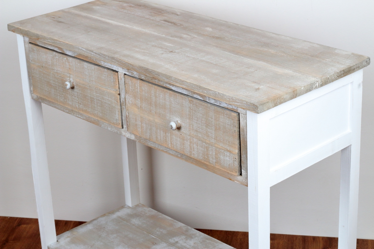 Dřevěný konzolový stolek se dvěma šuplíky 85x77x37cm připomíná omšelý kus nábytku ze staré půdy. Přesně takové kousky ale my milujeme. Mají totiž své jedinečné kouzlo strých časů.