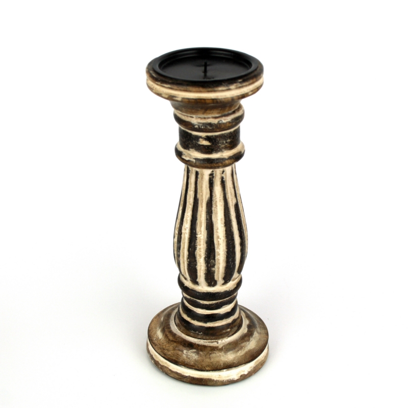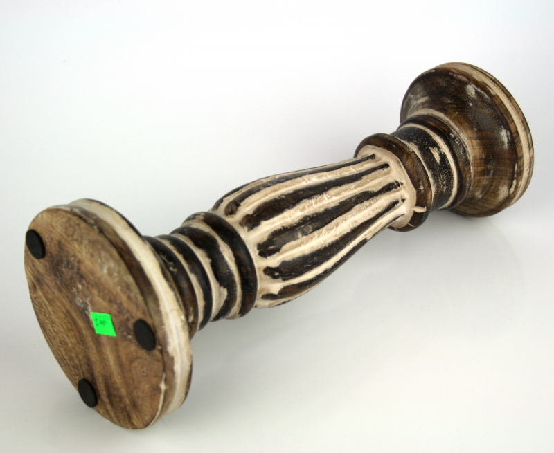 Dřevěný masivní svícen s patinou 31cm byl ručně vyřezán v Indii. Svícen nechává vyniknout krásu dřeva, které je doplněno o moderní patinu. Svícen krásným dekorativním prvkem interiéru, svícny a víčky navíc vytvářejí romantickou atmosféru. Jemné tlumené světlo je vhodné pro večerní relax.