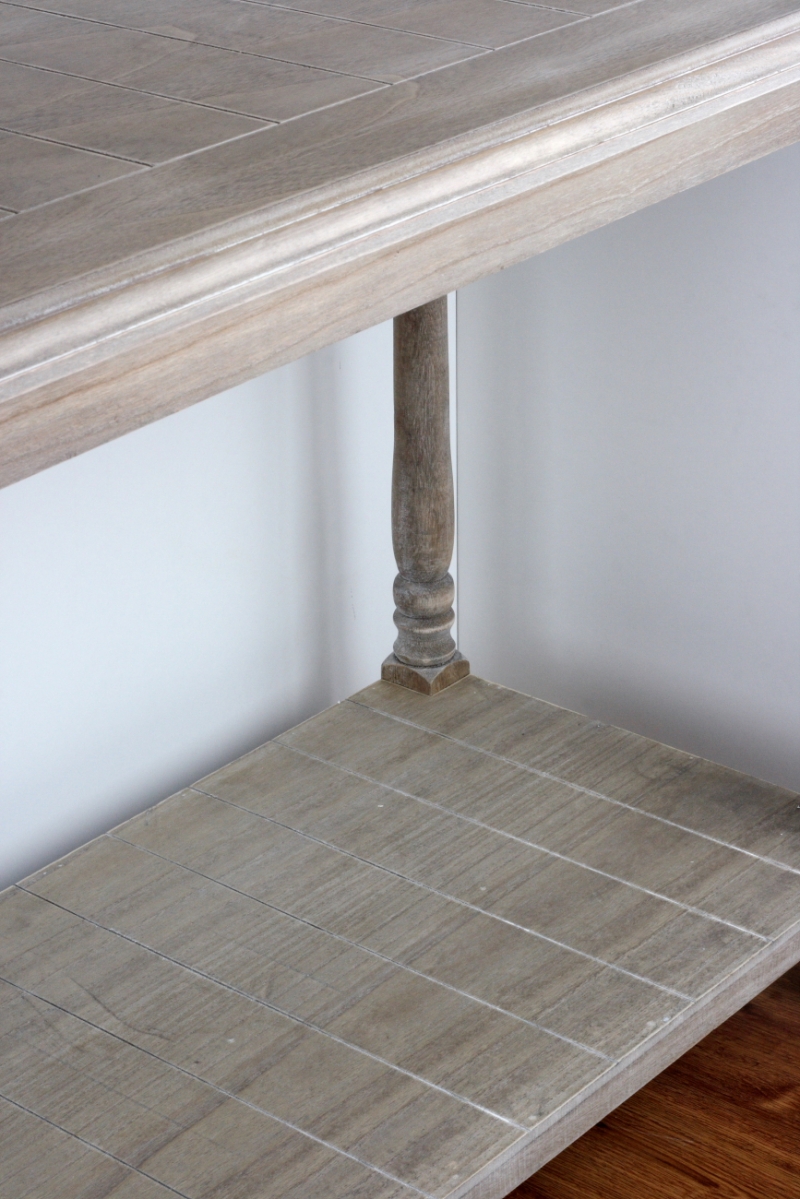 Stolek může sloužit jako otevřená komoda u stěny nebo v prostoru třeba jako kuchyňský ostrůvek. Spodní i horní deska má laťkový vzhled, nohy jsou soustružené. Přírodní tóny dřeva jsou vhodnou volbou do každého interiéru. Domov tak působí útulně a zabydleně.